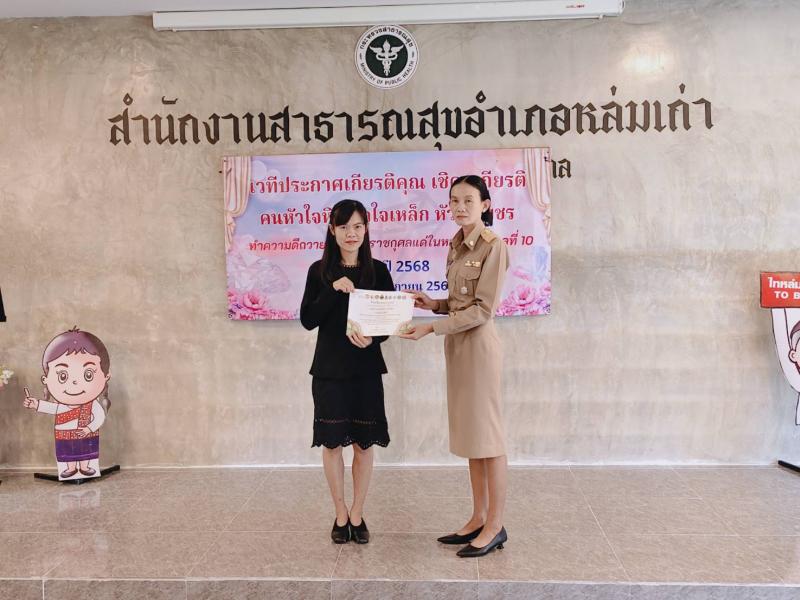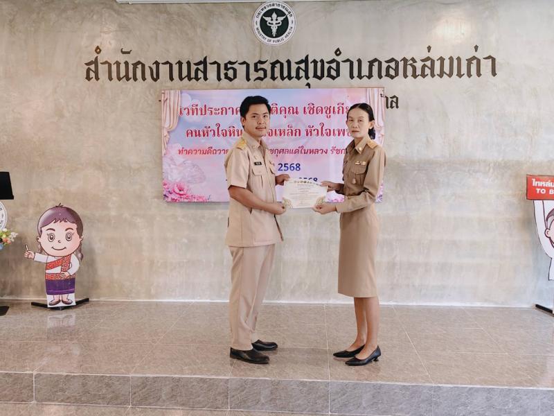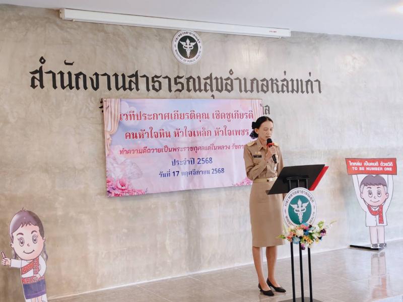 รายละเอียด : วันที่ 17 พฤศจิกายน พ.ศ. 2568 นางราตรี ราชพรหมมินทร์ ผู้อำนวยการกองสวัสดิการสังคม พร้อมด้วย นายศศิพงศ์ ศรีจริยา นักวิชาการเกษตรปฏิบัติการ และพนักงาน องค์การบริหารส่วนตำบลวังบาล เข้าร่วมพิธีรับมอบเกียรติบัตรเชิดชูเกียรติ “คนหัวใจหิน หัวใจเหล็ก หัวใจเพชร” ณ สำนักงานสาธารณสุขอำเภอหล่มเก่า เพื่อร่วมทำความดีถวายเป็นพระราชกุศลแด่พระบาทสมเด็จพระเจ้าอยู่หัว รัชกาลที่ 10