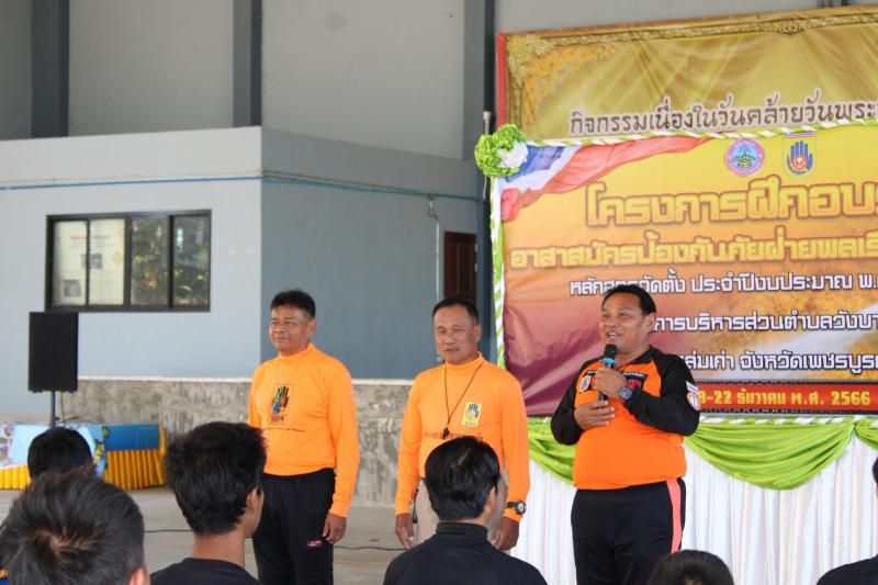 รายละเอียด : “พิธีปิดโครงการฝึกอบรมอาสาสมัครป้องกันภัยฝ่ายพลเรือน (อปพร.) "หลักสูตรจัดตั้ง" ประจำปีงบประมาณ พ.ศ.2567 ณ โดม อบต.วังบาล” วันที่ 22 ธันวาคม พ.ศ.2566 นายสุขเสริญ บัวอินทร์ นายกองค์การบริหารส่วนตำบลวังบาล ประธานในพิธีฯ พร้อมด้วยคณะผู้บริหาร หัวหน้าส่วนราชการ พนักงาน อบต.วังบาล ร่วมพิธีปิดโครงการฝึกอบรมอาสาสมัครป้องกันภัยฝ่ายพลเรือน (อปพร.) "หลักสูตรจัดตั้ง" ประจำปีงบประมาณ พ.ศ.2567 (ระหว่างวันที่ 18-22 ธันวาคม 2566) องค์การบริหารส่วนตำบลวังบาล ณ โดม อบต.วังบาล ทั้งนี้ นายสุขเสริญ บัวอินทร์ นายกองค์การบริหารส่วนตำบลวังบาล ฐานะผู้อำนวยการศูนย์ อปพร. องค์การบริหารส่วนตำบลวังบาล ได้ให้เกียรติมอบวุฒิบัตรแก่ผู้เข้าร่วมอบรม พร้อมทั้งให้โอวาท และกล่าวพิธีปิดโครงการ