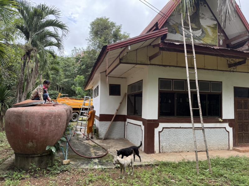 จัดรถบรรทุกน้ำเพื่อสำรองน้ำอุปโภคบริโภคให้แก่สำนักสงฆ์ หมู่ที่ 6