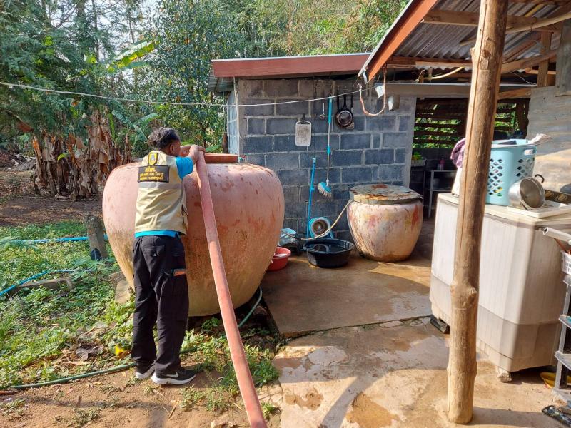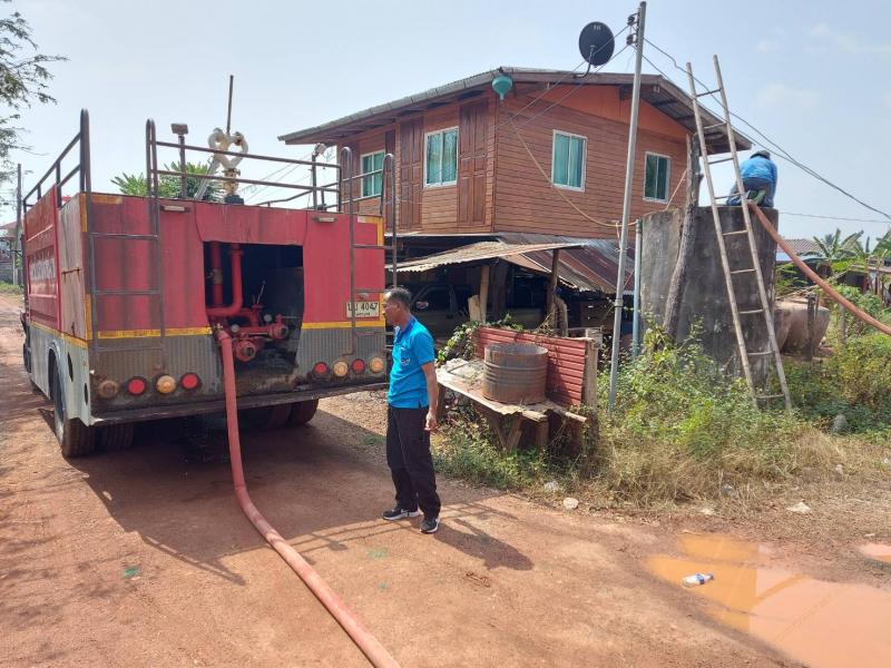 ออกให้บริการสาธารณะ เรื่องน้ำอุปโภค/บริโภค บรรทุกน้ำเพื่อสำรองน้ำให้ชาวบ้าน ในพื้นที่หมู่ 10 และ 12