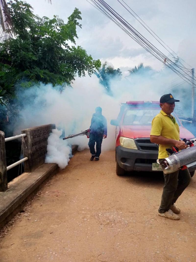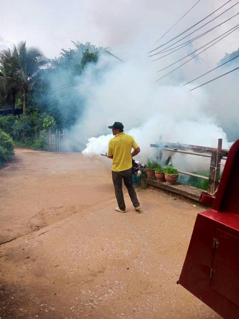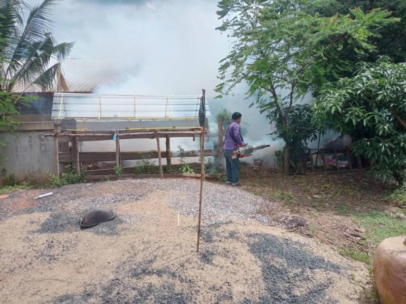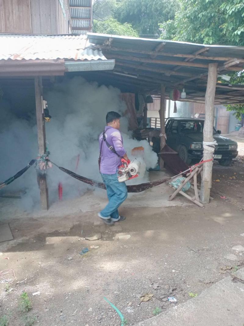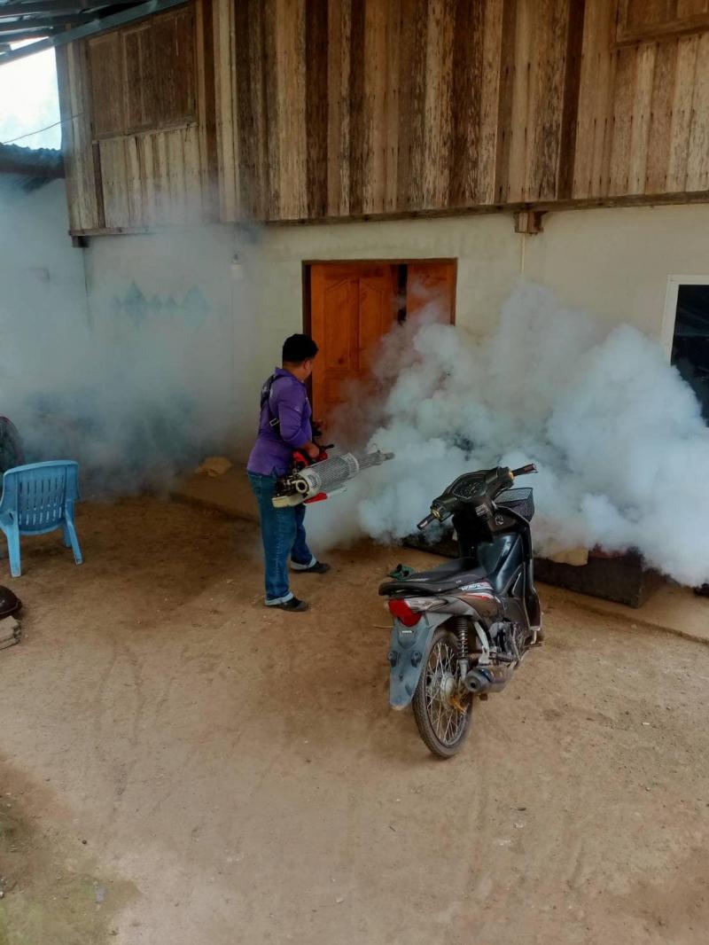 ดำเนินการพ่นหมอกควันกำจัดยุงลาย สนับสนุนให้กับเคสผู้ป่วยเดิม ในพื้นที่หมู่ที่ 9 และ 10 (ครั้งที่ 3)