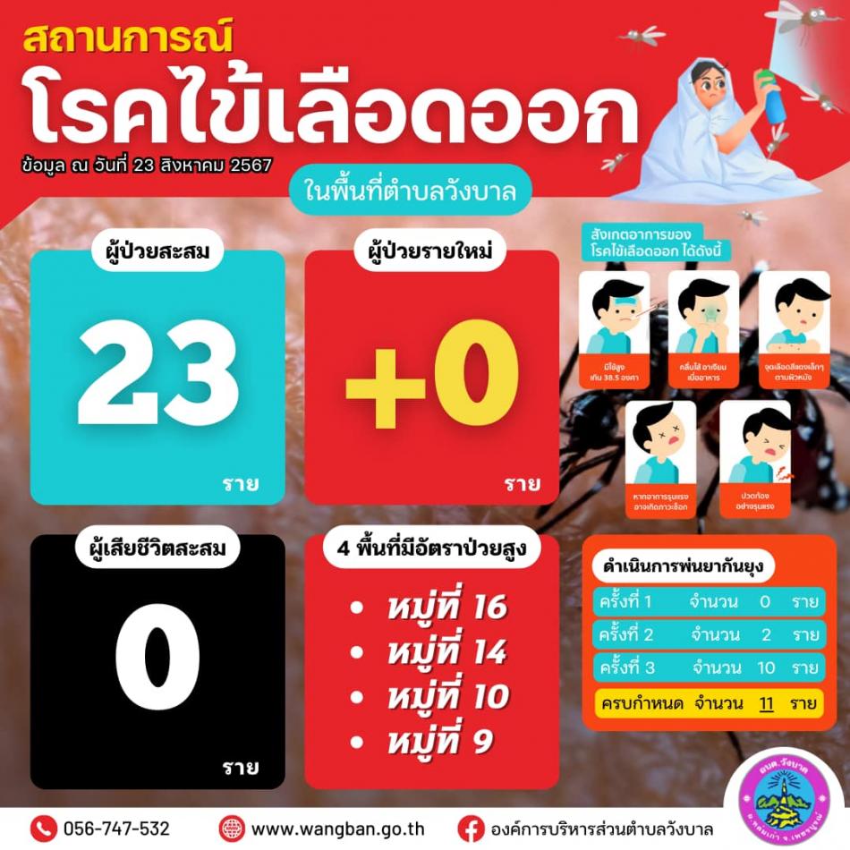 รายละเอียด : วันที่ 23 สิงหาคม พ.ศ.2567 กองสาธารณสุขและสิ่งแวดล้อม อบต.วังบาล ได้ดำเนินการพ่นหมอกควันกำจัดยุงลาย สนับสนุนให้กับเคสผู้ป่วยเดิม ในพื้นที่หมู่ที่ 9 จำนวน 1 ราย และหมู่ที่ 10 จำนวน 1 ราย ซึ่งครั้งนี้เป็นครั้งที่ 3
