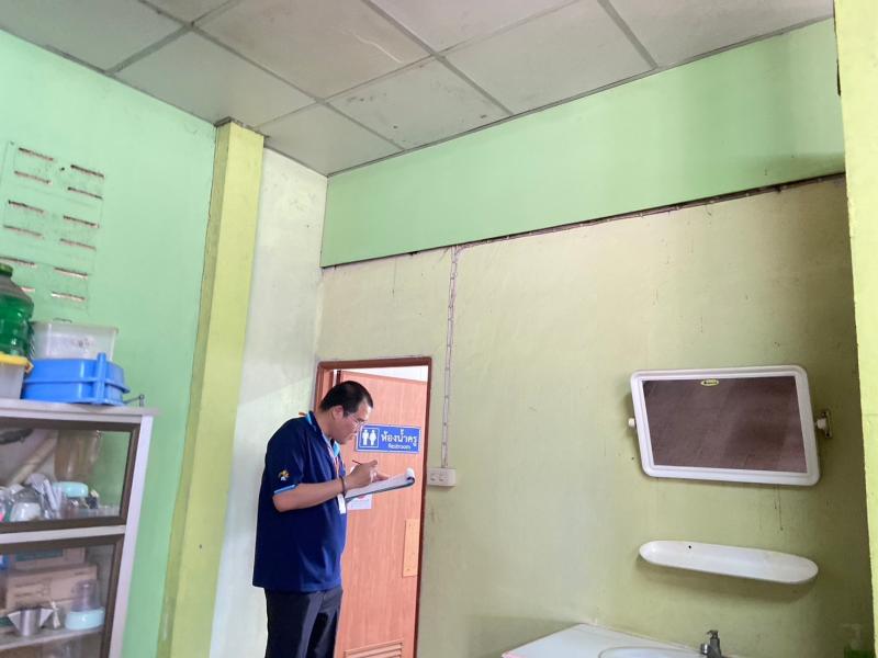 เข้าตรวจมาตรฐานสุขาภิบาลอาหารสำหรับโรงอาหาร (ตรวจประเมินโรงอาหาร) ณ โรงเรียนบ้านวังบาล