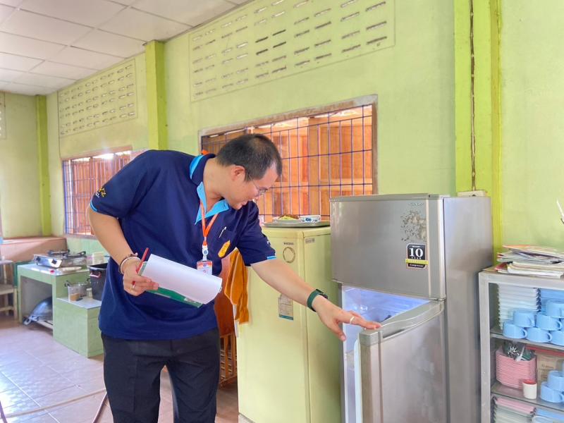 รายละเอียด : วันที่ 16 กุมภาพันธ์ พ.ศ.2567 นายวรภพ กันต์สุ่ม นักวิชาการสาธารณสุขปฏิบัติการ และพนักงานกองสาธารณสุขและสิ่งแวดล้อม อบต.วังบาล เข้าตรวจมาตรฐานสุขาภิบาลอาหารสำหรับโรงอาหาร (ตรวจประเมินโรงอาหาร) ณ โรงเรียนบ้านวังบาล เพื่อออกใบอนุญาตจัดตั้งสถานที่จำหน่ายอาหารและสถานที่สะสมอาหาร โดยตรวจสุขลักษณะสถานที่ประกอบปรุงอาหาร สถานที่รับประทานอาหาร และตรวจภาชนะอุปกรณ์ ฯลฯ ซึ่งเป็นการเฝ้าระวังคุณภาพอาหารให้มีความปลอดภัยต่อนักเรียนและบุคลากรของโรงเรียน