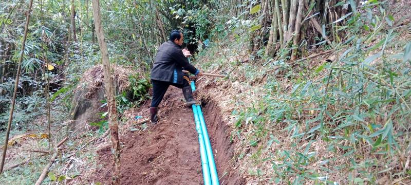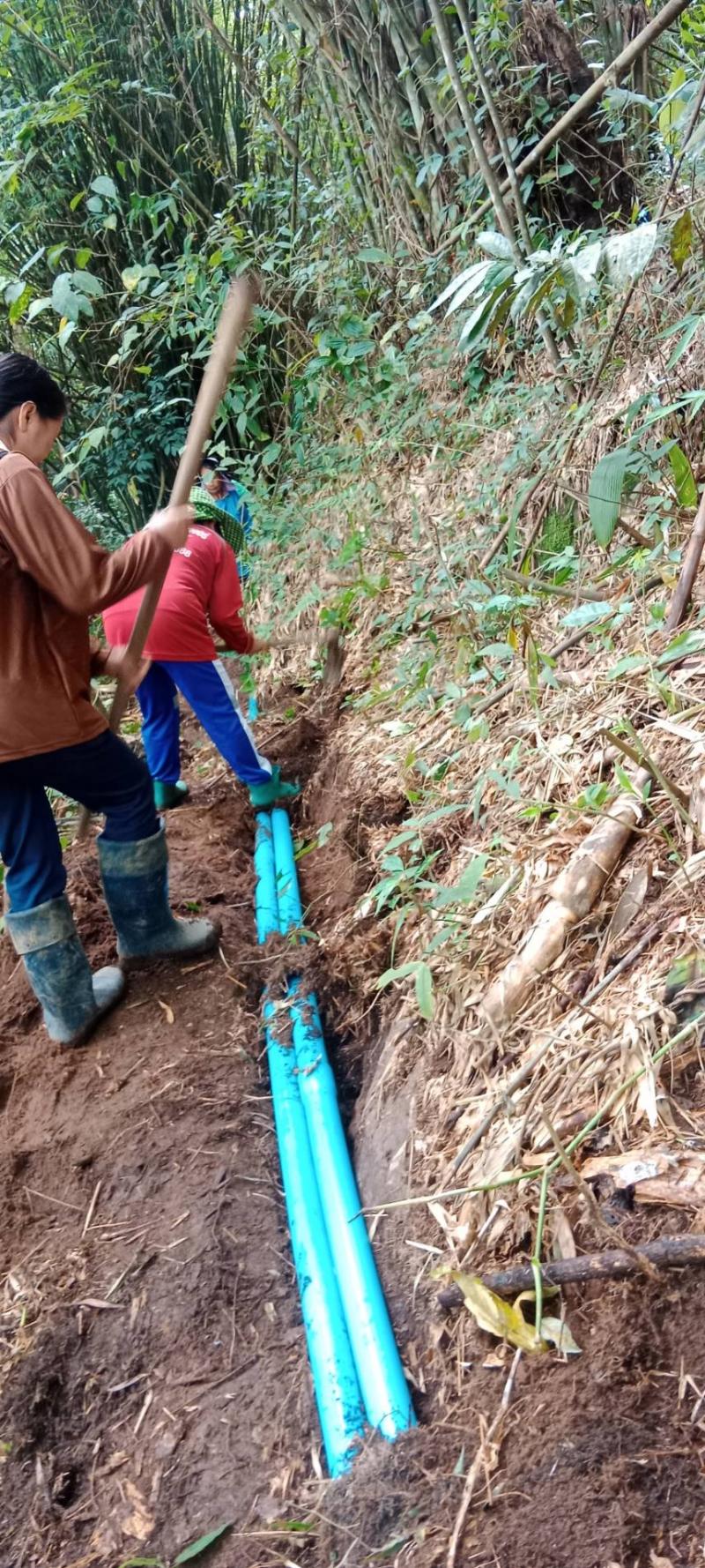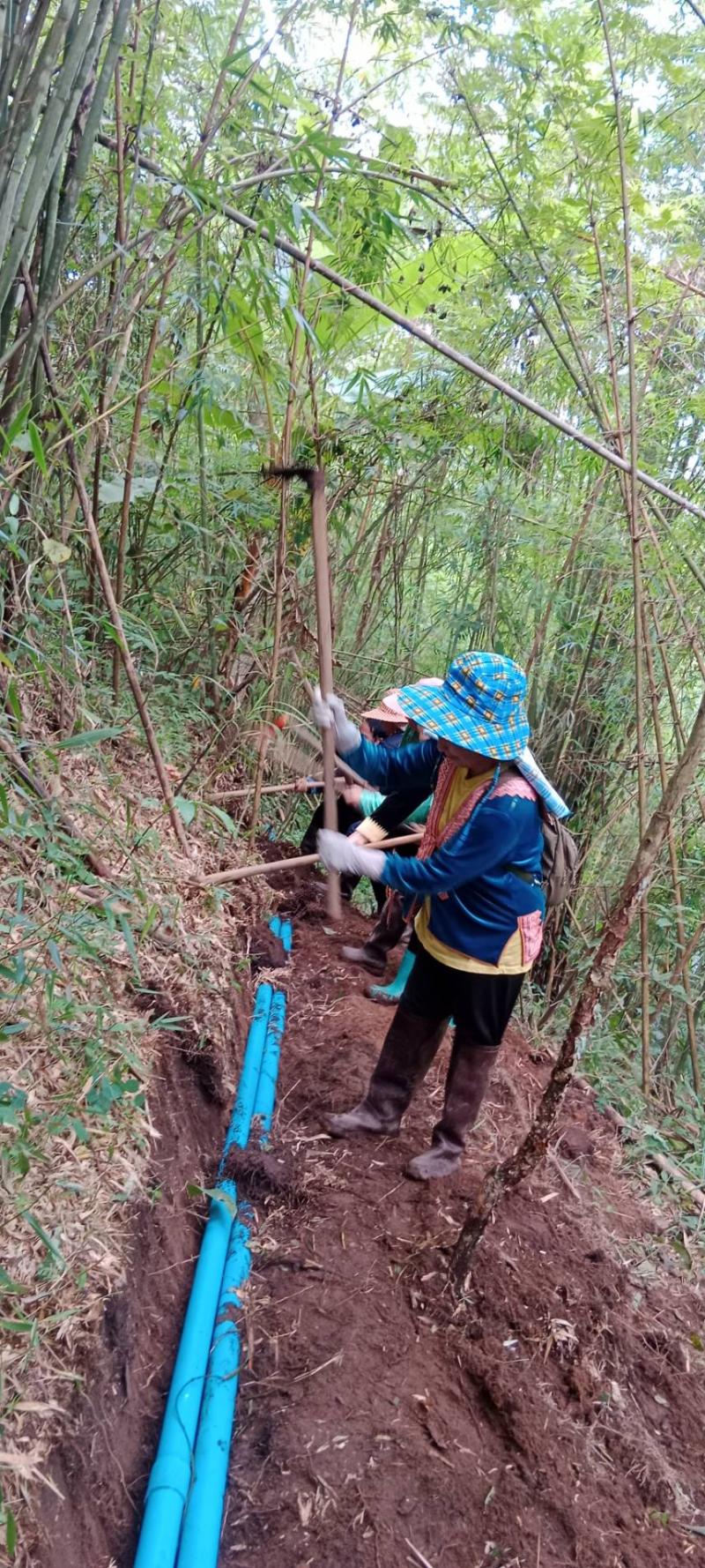 ดำเนินการวางท่อส่งน้ำ (จุดสระน้ำห้วยปลา-สนามกลางหมู่บ้าน) เพื่อบรรเทาความเดือนร้อนและปัญหาขาดแคลนน้ำในพื้นที่ หมู่ 14 และ 16