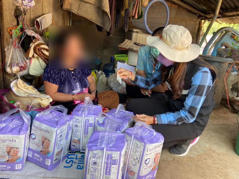 ลงพื้นที่เยี่ยมบ้าน พร้อมมอบผ้าอ้อมของศูนย์พัฒนาคุณภาพชีวิตและส่งเสริมผู้สูงอายุตำบลวังบาล ในพื้นที่หมู่ 14 และ 16