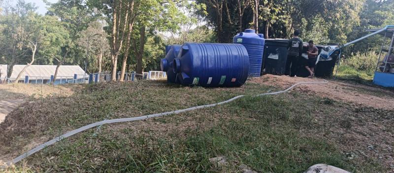 เจ้าหน้าที่ศูนย์ประสานงานบ้านทับเบิก ออกให้บริการสาธารณะส่งน้ำอุปโภคให้แก่ โรงเรียนบ้านทับเบิกร่วมใจ