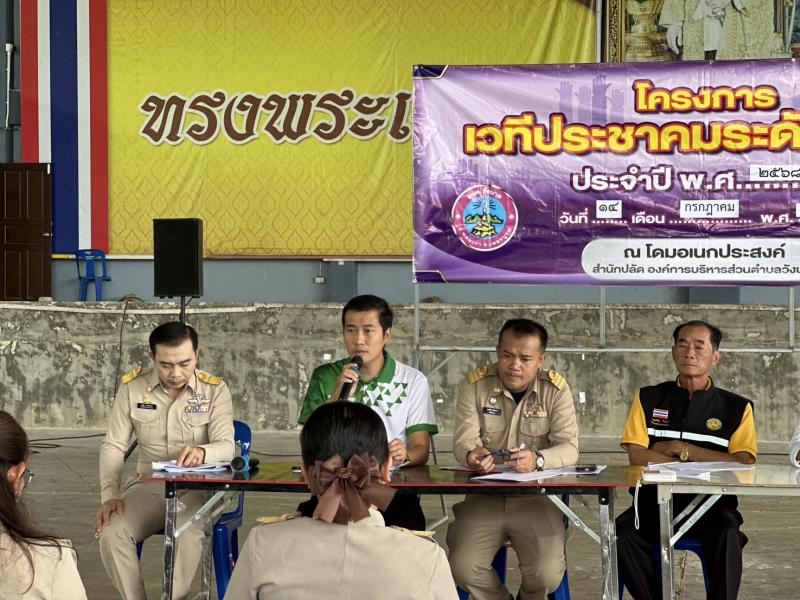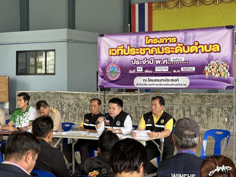 รายละเอียด : วันที่ 14 กรกฎาคม พ.ศ. 2568 นายสุขเสริญ บัวอินทร์ นายกองค์การบริหารส่วนตำบลวังบาล พร้อมด้วยนายธรรมบุตร มัททวะสุรเกียรติ์ รองนายกองค์การบริหารส่วนตำบลวังบาล นายจีระวัฒน์ แซ่เถา รองนายกองค์การบริหารส่วนตำบลวังบาล นายวิวัติ เถารักตระกุล เลขานุการนายกองค์การบริหารส่วนตำบลวังบาล นายษัษฐี ม่วงศรีจันทร์ รองปลัดองค์การบริหารส่วนตำบล รักษาราชการแทน ปลัดองค์การบริหารส่วนตำบลวังบาล นางสาวสุริยาภรณ์ เทพธานี นักวิเคราะห์นโยบายและแผนชำนาญการพิเศษ และพนักงานองค์การบริหารส่วนตำบลวังบาล ร่วมจัดทำโครงการเวทีประชาคมระดับตำบล ตามที่ อบต.วังบาล จะดำเนินการจัดทำแผนพัฒนาท้องถิ่น (พ.ศ.2566 - 2570) เพิ่มเติม ครั้งที่ 3/2568 เพื่อให้คณะกรรมการพัฒนาท้องถิ่นและประชาคมท้องถิ่น พิจารณาร่างแผนพัฒนาท้องถิ่นที่เพิ่มเติม เพื่อใช้เป็นแนวทางในการจัดทำงบประมาณของ อบต.วังบาลต่อไป ณ อาคารอเนกประสงค์ (โดม) อบต.วังบาล โดยมีกำนันตำบลวังบาล ผู้นำชุมชน สมาชิกสภาอบต.วังบาล หัวหน้าส่วนราชการ หน่วยงานราชการในระดับตำบล เจ้าหน้าที่หน่วยงานราชการที่รับผิดชอบในเขตพื้นที่ตำบลวังบาล และประชาชน เข้าร่วมโครงการเวทีประชาคมระดับตำบลในครั้งนี้ด้วย