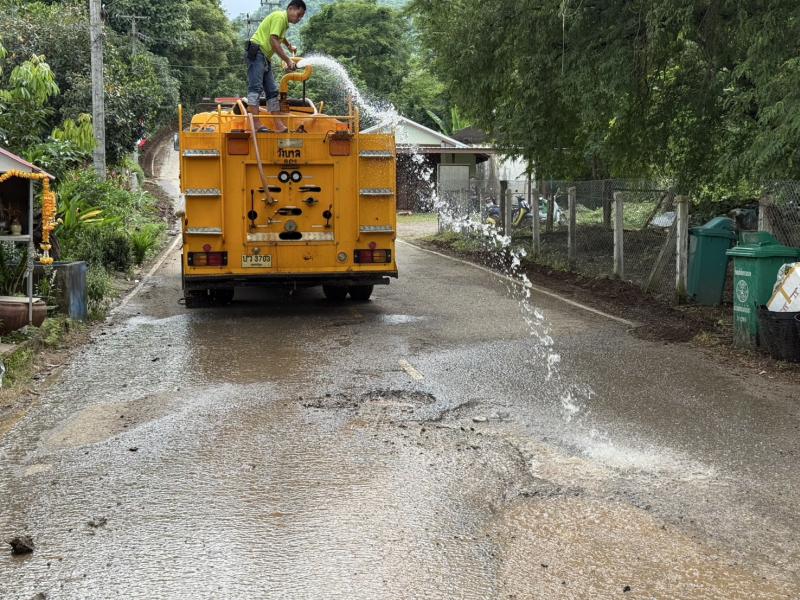 อบต.วังบาล ล้างทำความสะอาดถนน หมู่ที่ 11