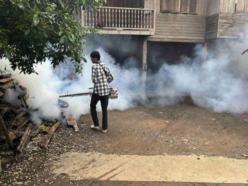 ดำเนินการพ่นหมอกควันกำจัดยุงลาย สนับสนุนให้กับเคสผู้ป่วย ในพื้นที่หมู่ 7 (ครั้งที่ 1)