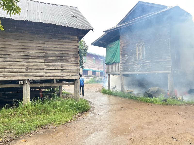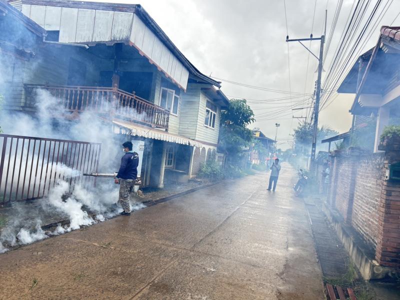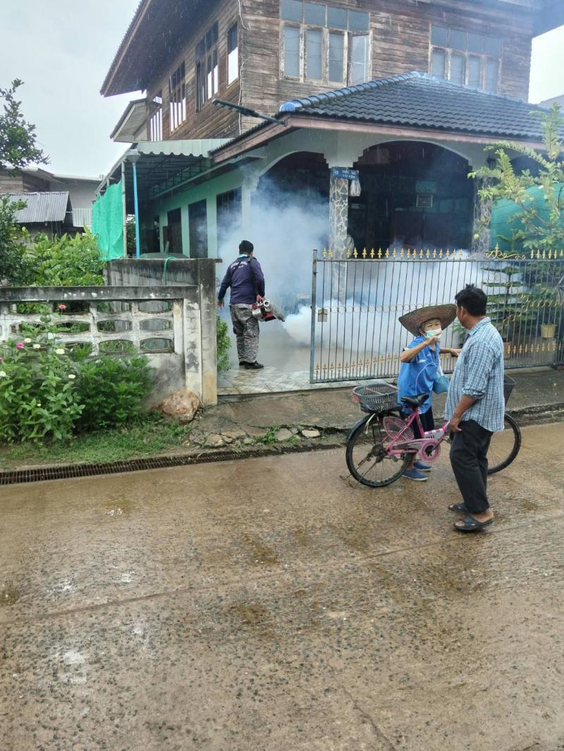 กองสาธารณสุขและสิ่งแวดล้อม อบต.วังบาล พ่นหมอกควันกำจัดยุงลาย หมู่ที่ 2