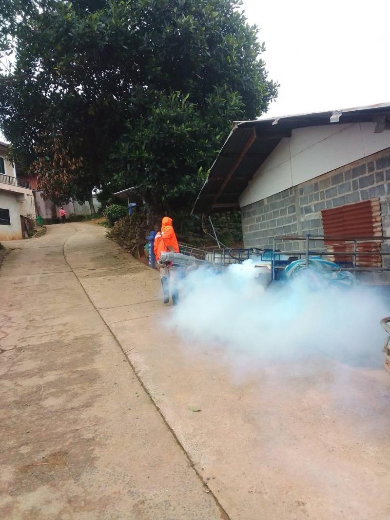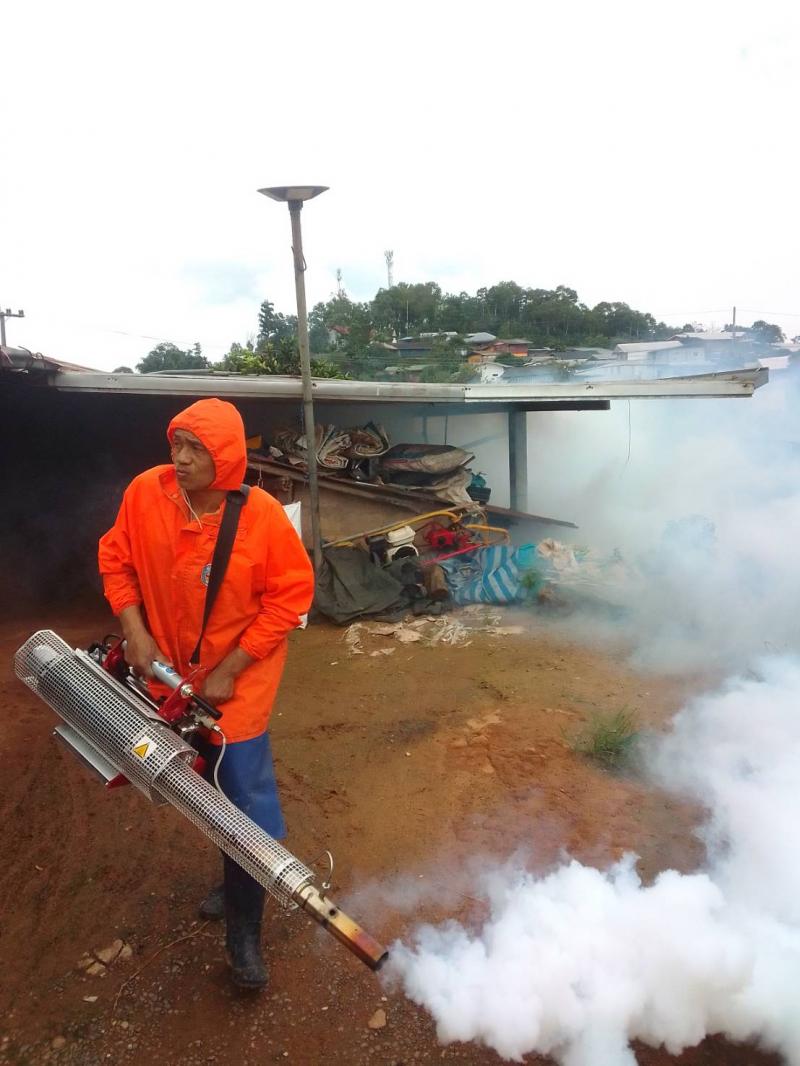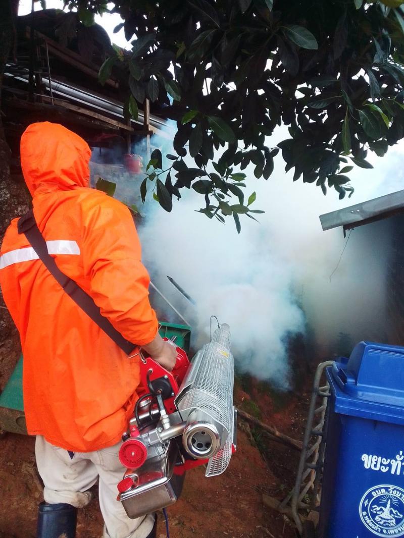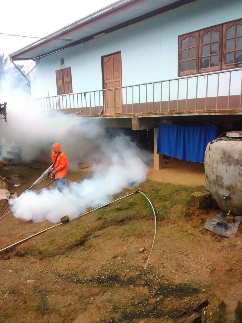 ดำเนินการพ่นหมอกควันกำจัดยุงลาย สนับสนุนให้กับเคสผู้ป่วย ในพื้นที่หมู่ 14 (ครั้งที่ 3)