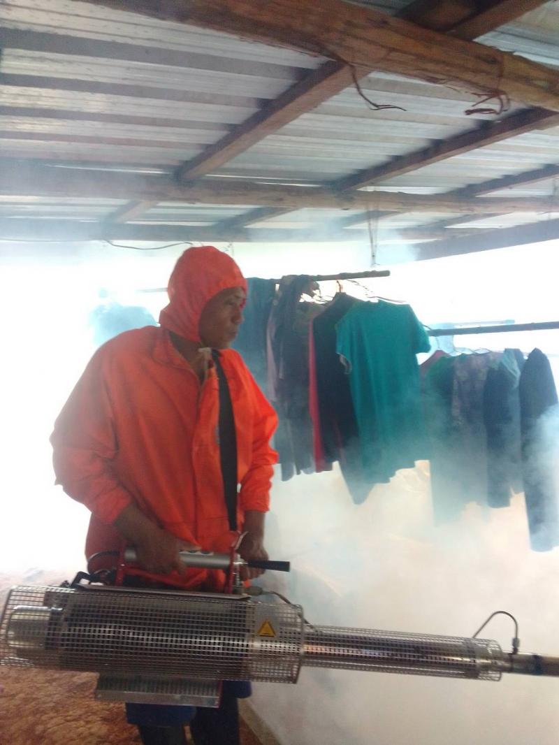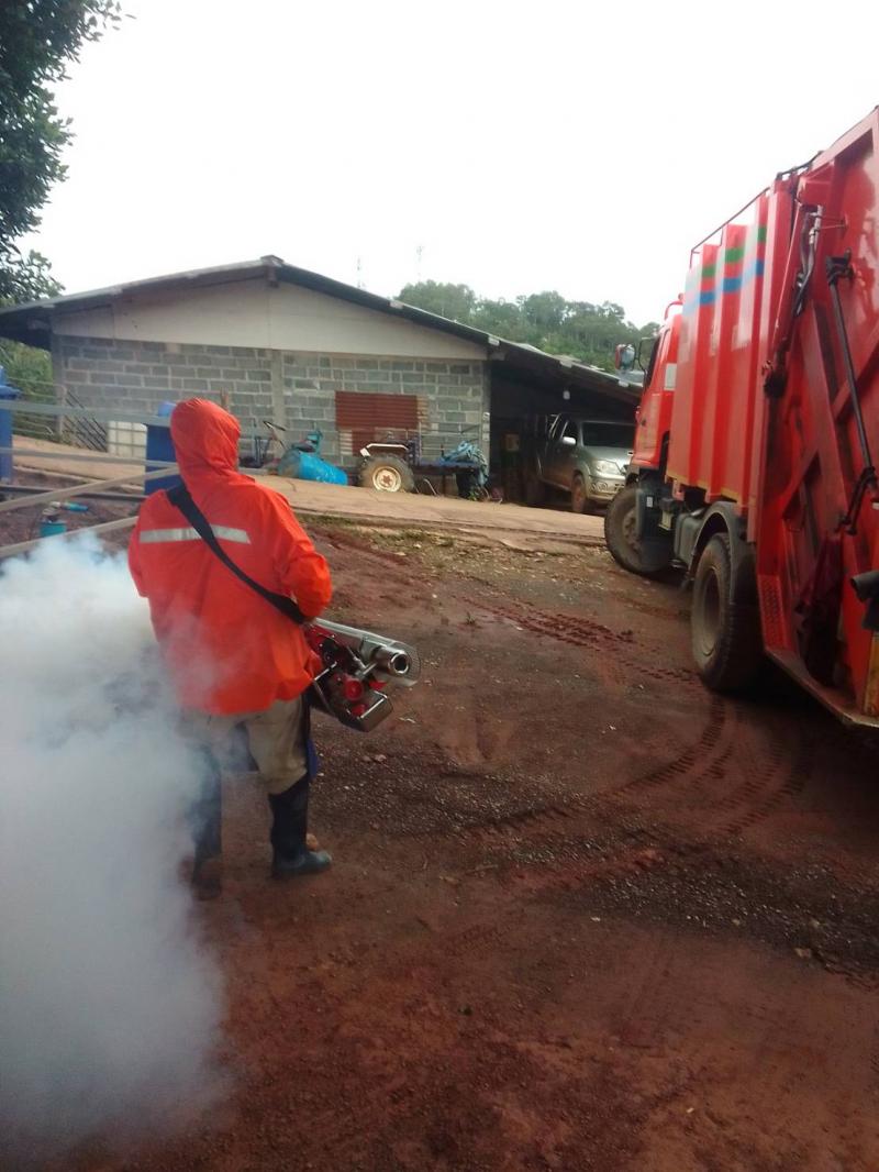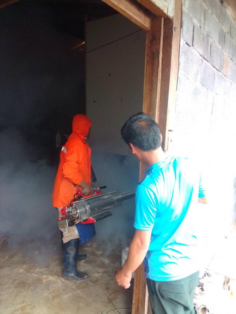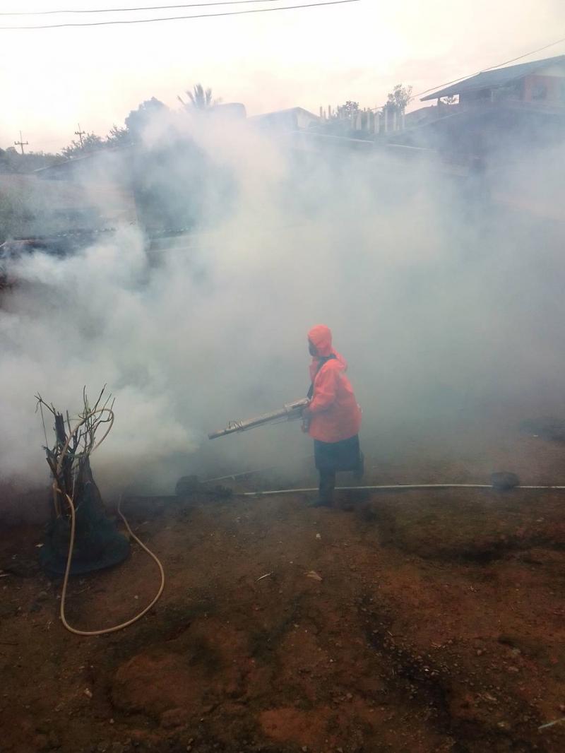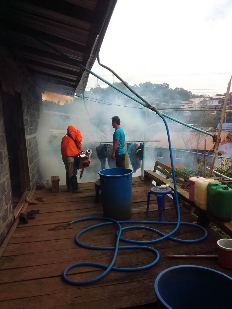 ดำเนินการพ่นหมอกควันกำจัดยุงลาย สนับสนุนให้กับเคสผู้ป่วย ในพื้นที่หมู่ 14 (ครั้งที่ 3)