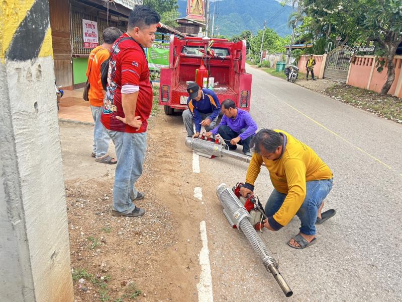 กองสาธารณสุขและสิ่งแวดล้อม องค์การบริหารส่วนตำบลวังบาล ดำเนินการพ่นหมอกควันกำจัดยุงลาย เพื่อควบคุมและป้องกันโรคไข้เลือดออกในพื้นที่หมู่ที่ 8, 9, 10, 14 และ 15