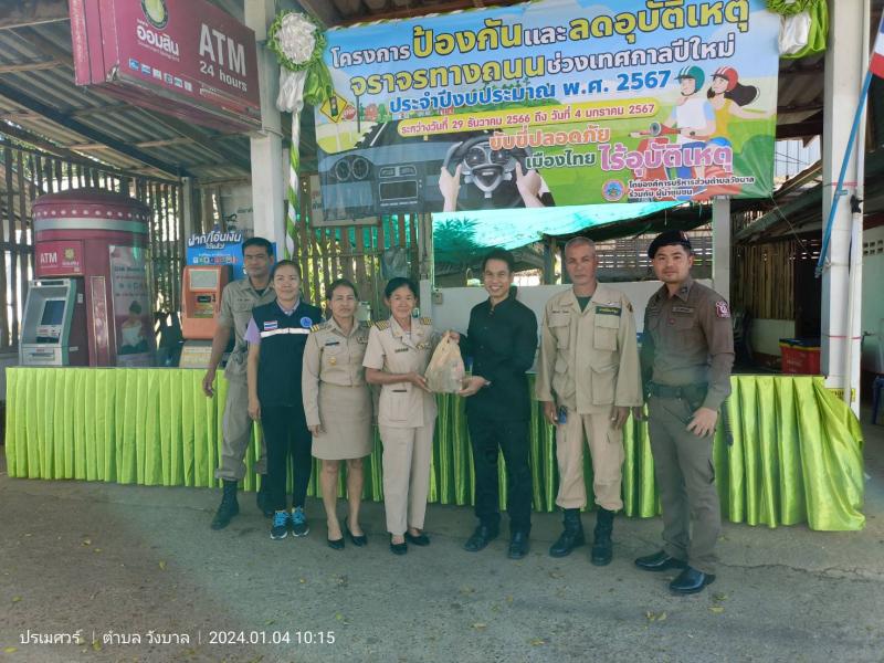 รายละเอียด : ตามที่ งานป้องกันและบรรเทาสาธารณภัย สำนักปลัด อบต.วังบาล จัดทำโครงการป้องกันและลดอุบัติเหตุจราจรทางถนน ช่วงเทศกาลปีใหม่ พ.ศ.2567 โดยตั้งจุดตรวจและให้บริการประชาชน ในระหว่างวันที่ 29 ธันวาคม พ.ศ. 2566 ถึงวันที่ 4 มกราคม พ.ศ. 2567 ซึ่งวันนี้ (วันที่ 4 มกราคม พ.ศ.2567) เป็นวันที่ 7เพื่อให้บริการช่วยเหลือประชาชนตลอด 24 ชั่วโมง ในช่วงเทศกาลปีใหม่ พ.ศ. 2567 (7 วันอันตราย) และเพื่อป้องกันและลดอุบัติเหตุทางถนนในเขตพื้นที่ ร่วมกับเจ้าหน้าที่ตำรวจในพื้นที่ ผู้นำชุมชน อาสาสมัครหมู่บ้าน (อสม.) และอาสาสมัครป้องกันภัยฝ่ายพลเรือน (อปพร.)