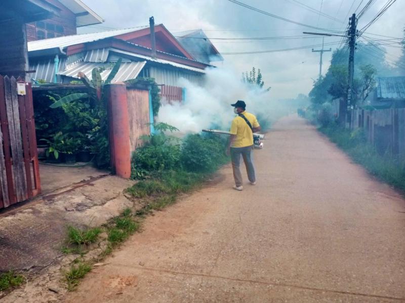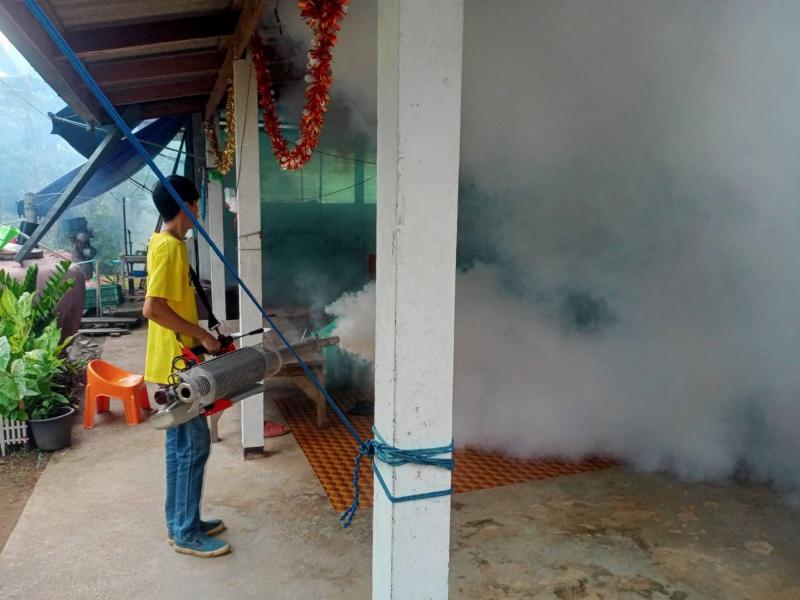 ดำเนินการพ่นหมอกควันกำจัดยุงลาย สนับสนุนให้กับเคสผู้ป่วย ในพื้นที่หมู่ที่ 5 (ครั้งที่ 1)