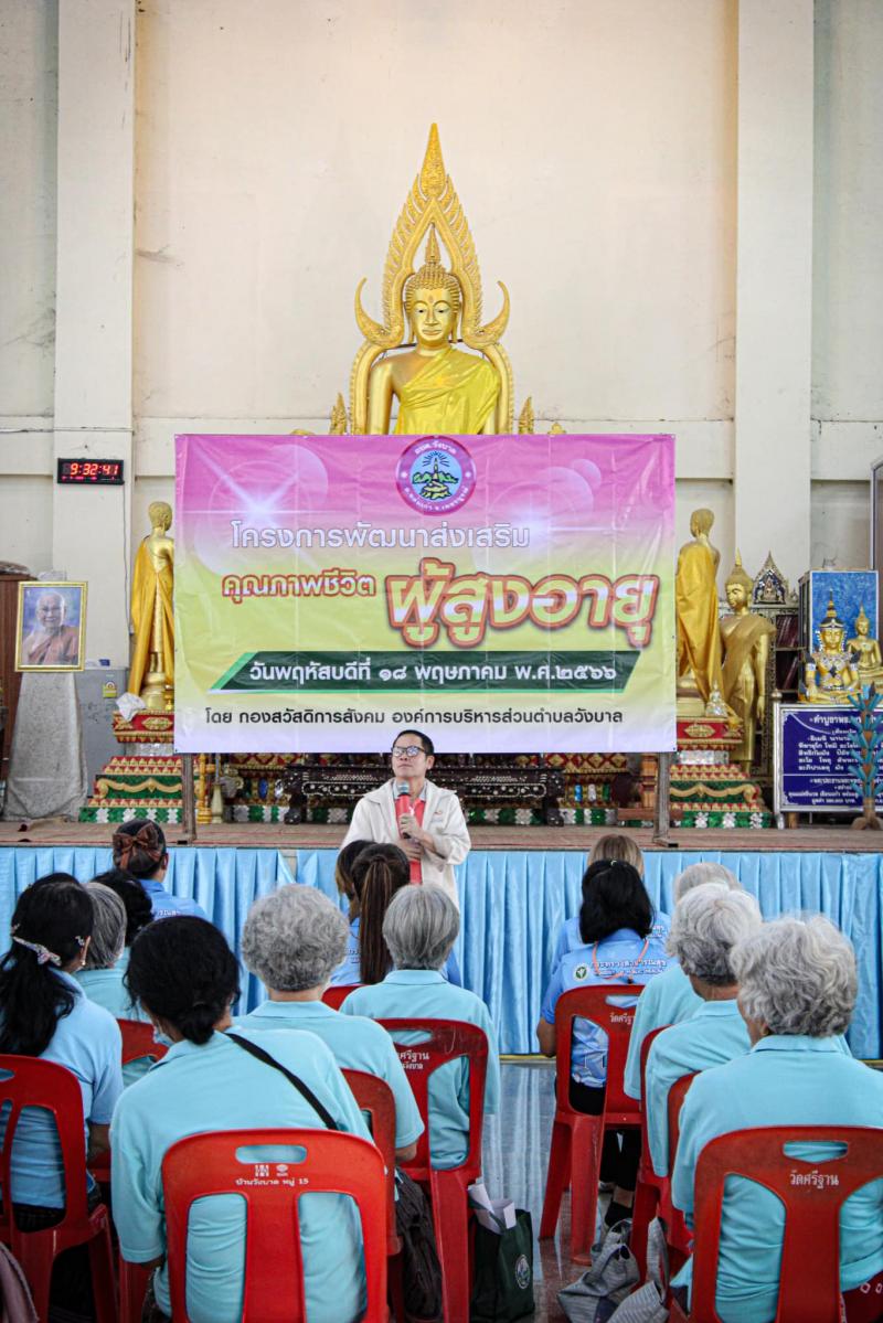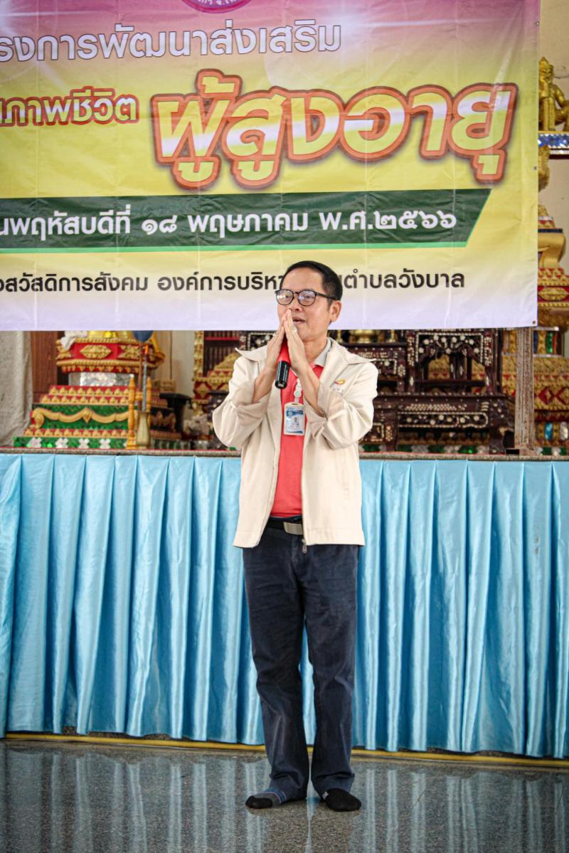 รายละเอียด : วันที่ 18 พฤษภาคม 2566 เวลา 09.30 น. นายสุขเสริญ บัวอินทร์ นายกองค์การบริหารส่วนตำบลวังบาล เป็นประธานเปิดโครงการพัฒนาส่งเสริมคุณภาพชีวิตผู้สูงอายุ ณ วัดศรีฐานปิยาราม โดยมี ว่าที่ร้อยตรีปรเมศวร์ ราชพรหมมินทร์ รองปลัดองค์การบริหารส่วนตำบลวังบาล เป็นผู้กล่าวรายงาน พร้อมด้วย นางราตรี ราชพรหมมินทร์ ผู้อำนวยการกองสวัสดิการสังคม และพนักงานเจ้าหน้าที่ กองสวัสดิการสังคม องค์การบริหารส่วนตำบลวังบาล