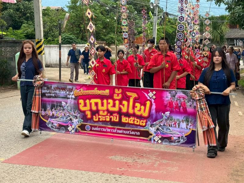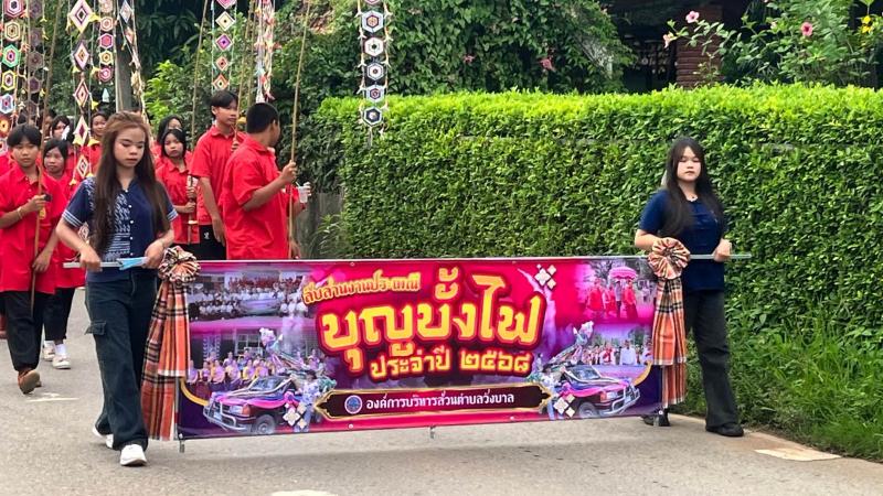 ร่วมเดินขบวนแห่บั้งไฟ และพิธีเปิดโครงการสืบสานงานประเพณีบุญบั้งไฟ ประจำปี 2568 ณ วัดศรีฐาน