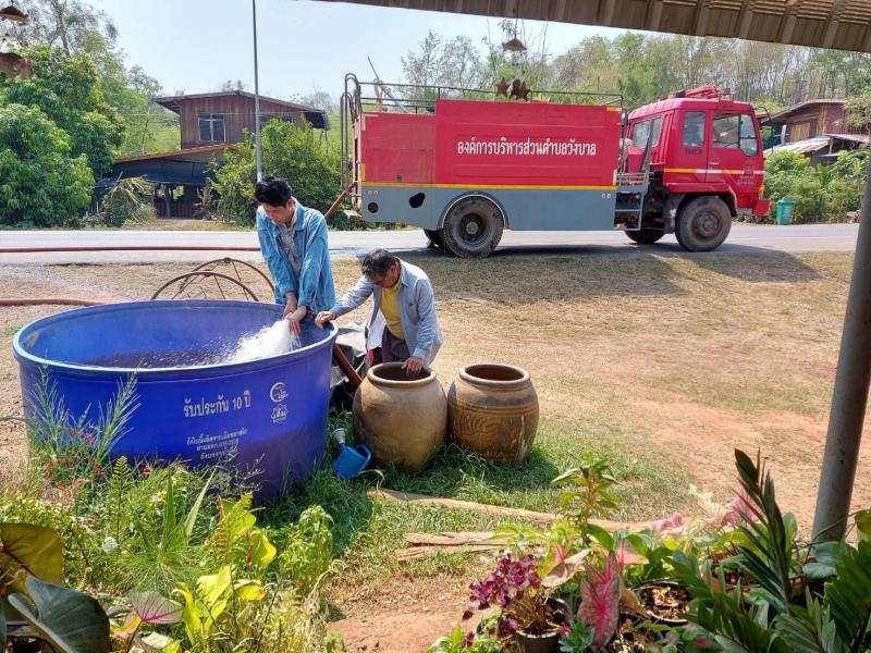 ออกให้บริการสาธารณะ เรื่องน้ำอุปโภค/บริโภค บรรทุกน้ำเพื่อสำรองน้ำให้ชาวบ้าน ในพื้นที่หมู่ 9, 10 และ 12
