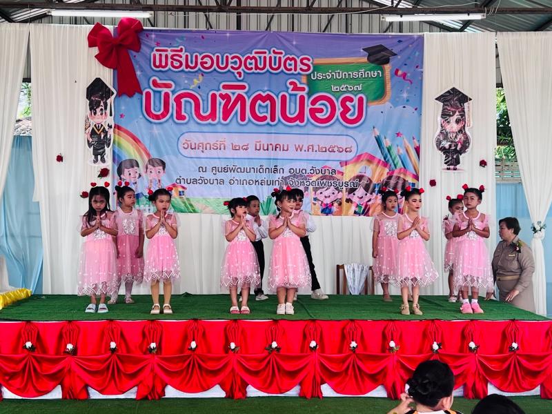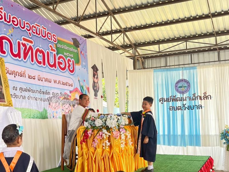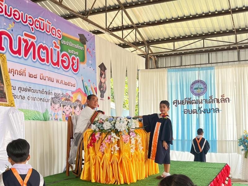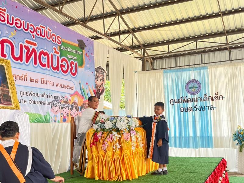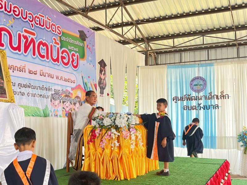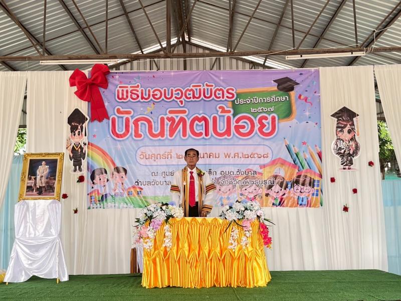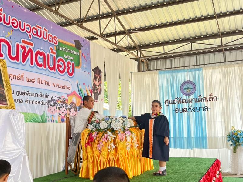 ร่วมพิธีมอบวุฒิบัตร (บัณฑิตน้อย) ให้กับนักเรียนชั้นอนุบาลปีที่ 3 ที่จบการศึกษา ประจำปีการศึกษา 2567 ณ ศูนย์พัฒนาเด็กเล็ก อบต.วังบาล