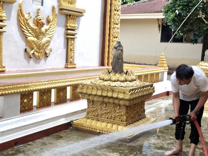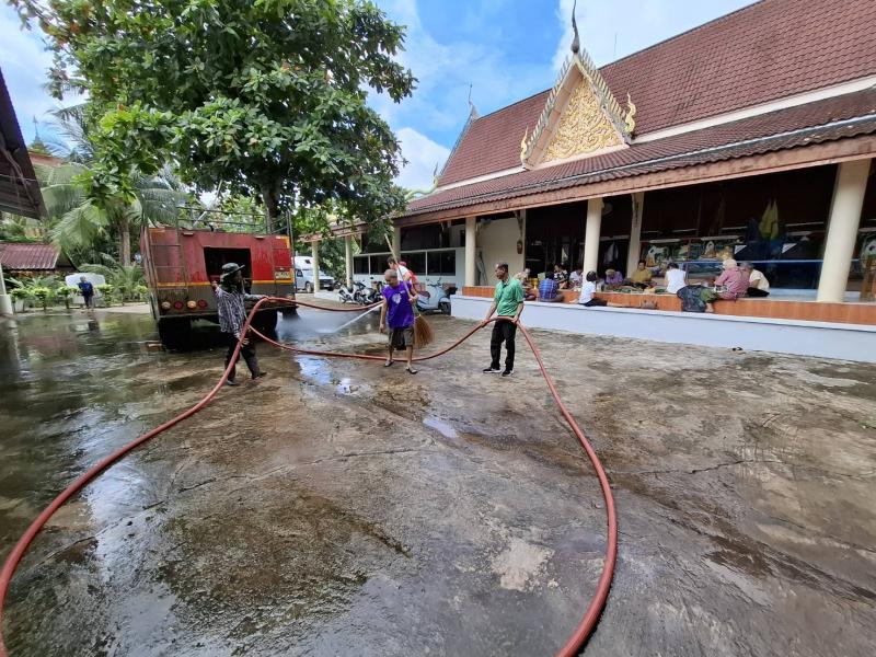 ออกให้บริการสาธารณะ ในพื้นที่หมู่ 11 โดยนำรถบรรทุกน้ำ ดำเนินการทำความสะอาด บริเวณลานวัดโพนทอง บ้านเหมืองแบ่ง
