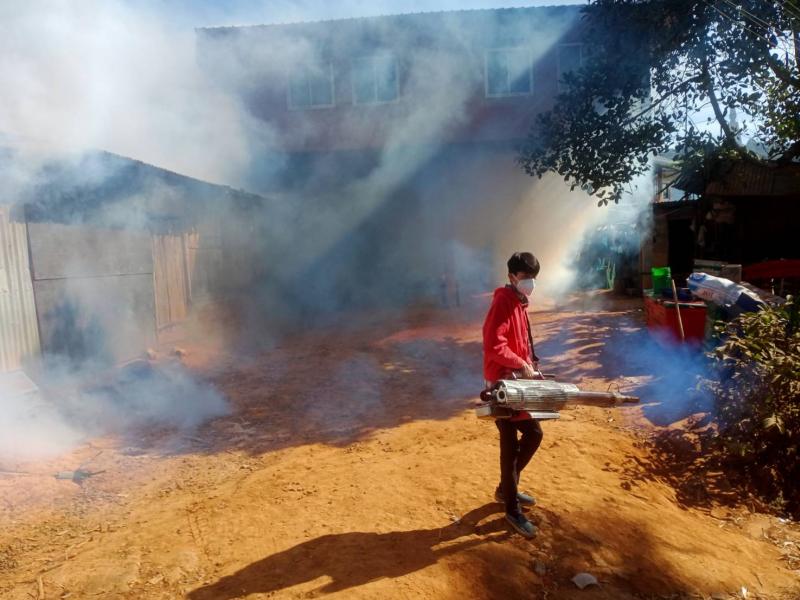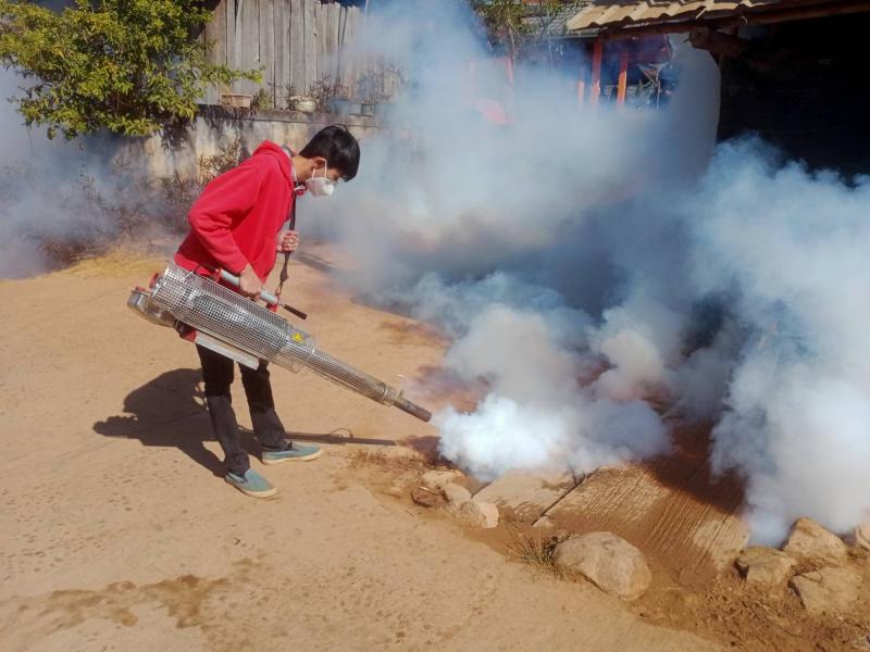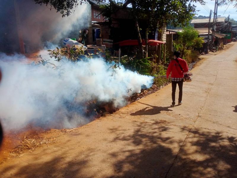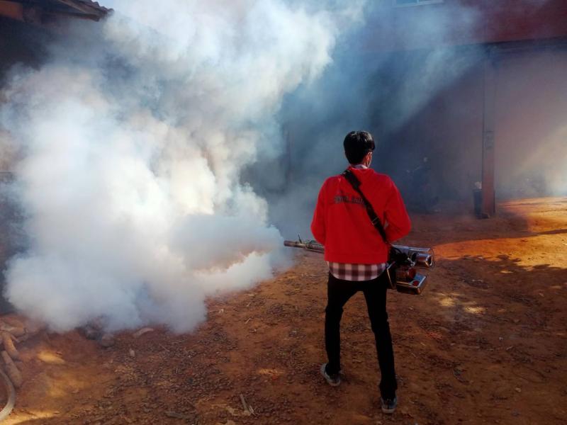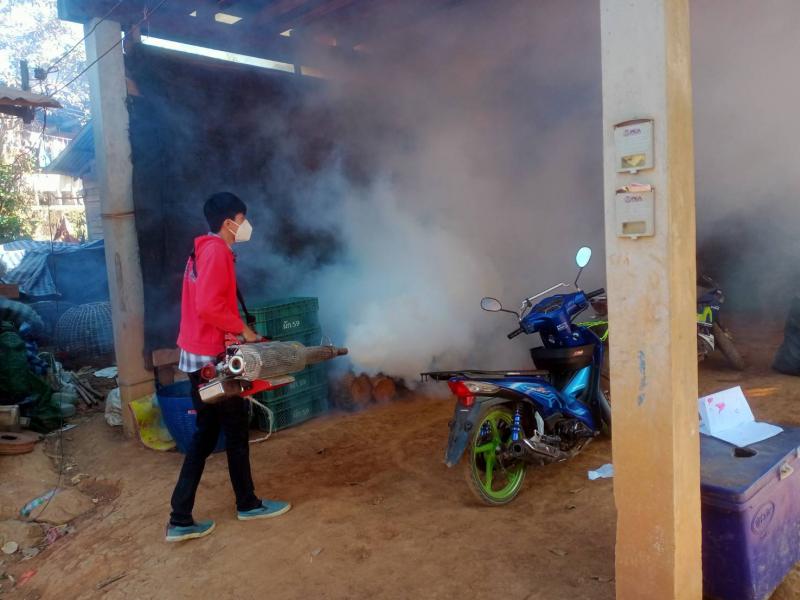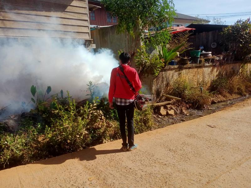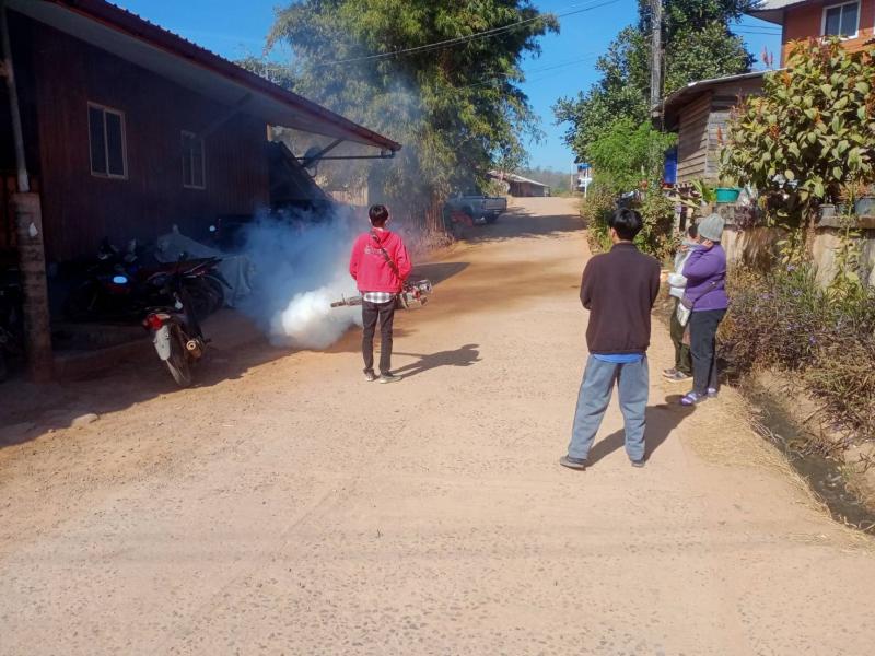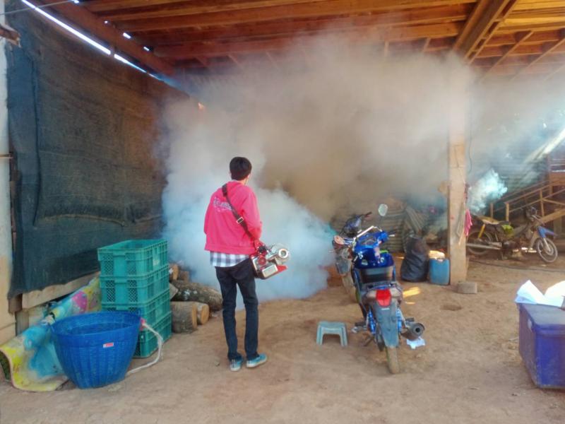 ดำเนินการพ่นหมอกควันกำจัดยุงลาย สนับสนุนให้กับเคสผู้ป่วยรายใหม่ ในพื้นที่หมู่ที่ 14 จำนวน 1 ราย ครั้งที่ 1