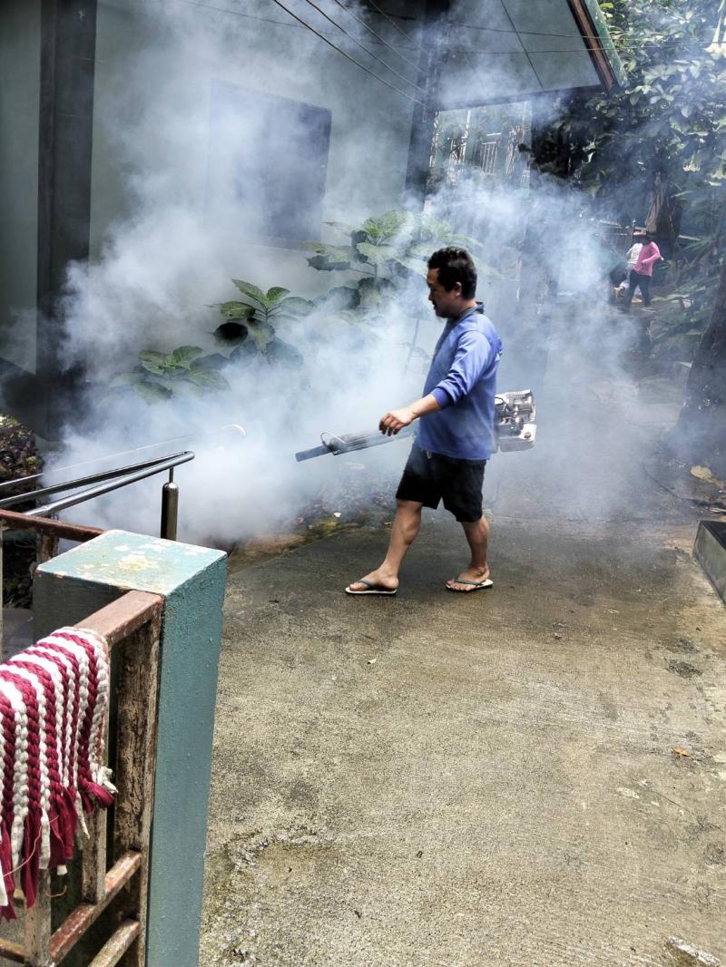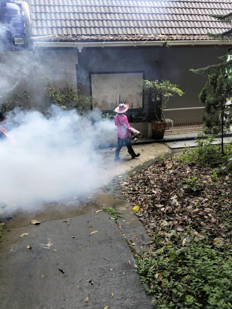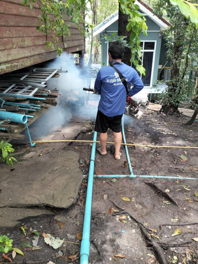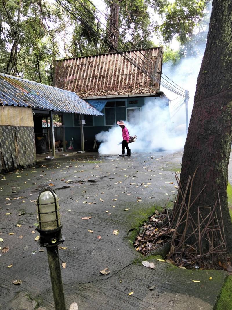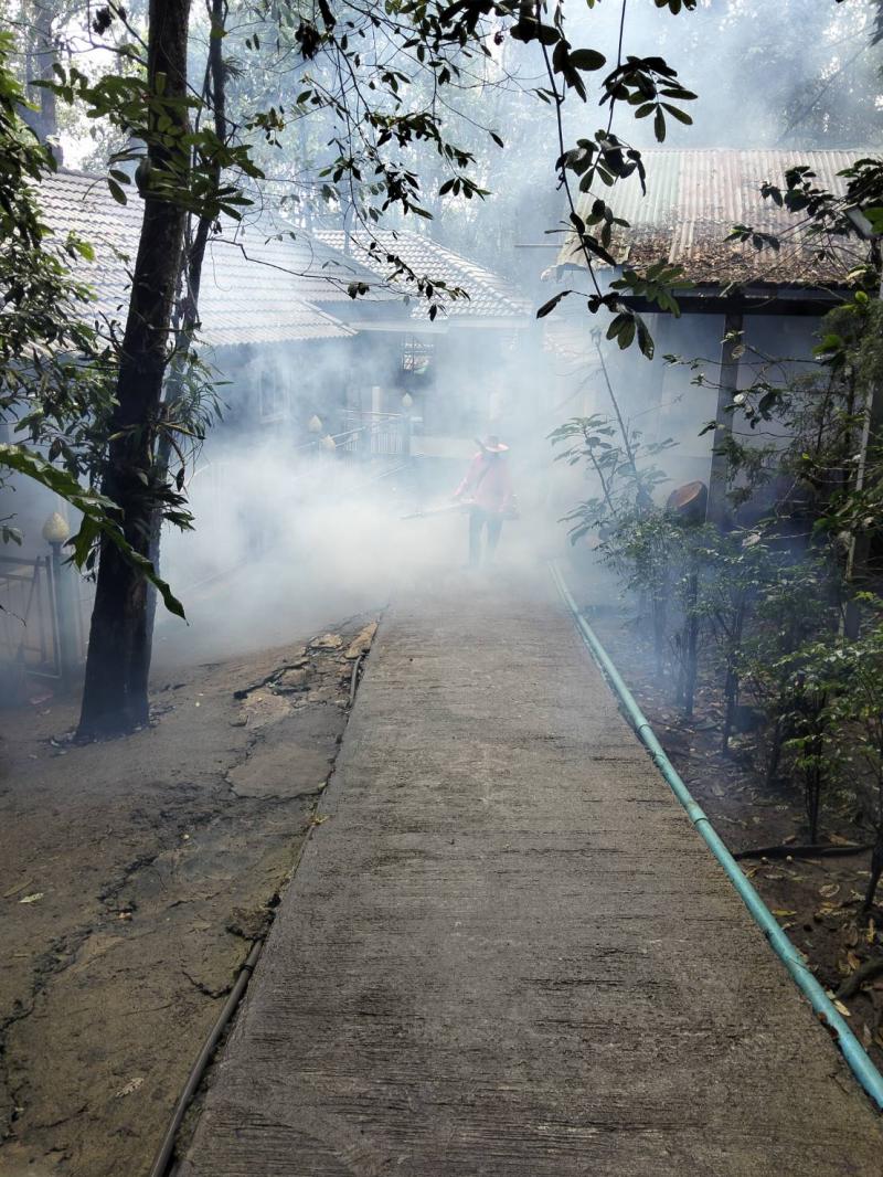 กองสาธารณสุขและสิ่งแวดล้อม อบต.วังบาล ดำเนินการพ่นหมอกควันกำจัดยุงลาย เคสใหม่ วัดป่าภูทับเบิก