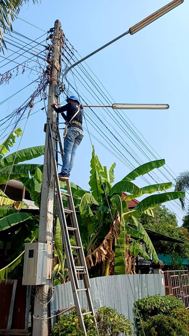 ออกให้บริการสาธารณะ ด้านการซ่อมแซมไฟฟ้าและติดตั้งไฟใหม่ ในพื้นที่หมู่ 2 และ 10