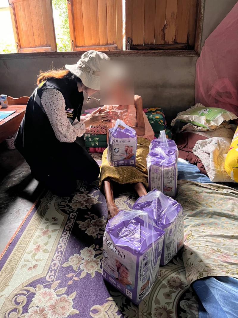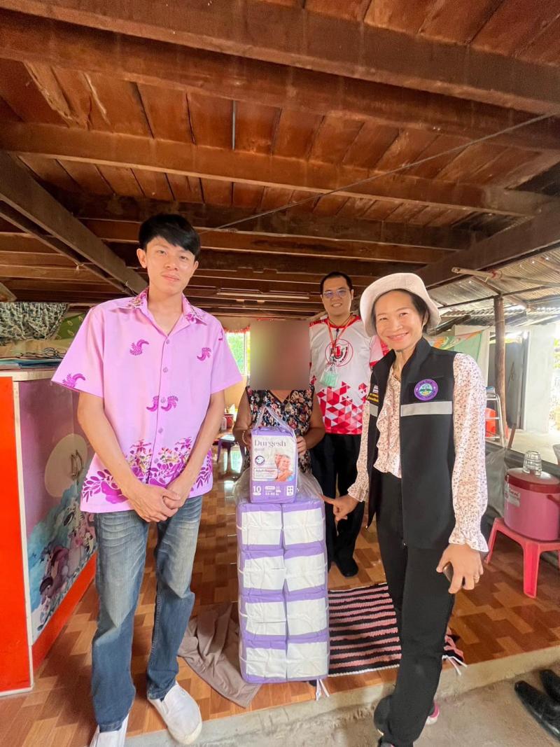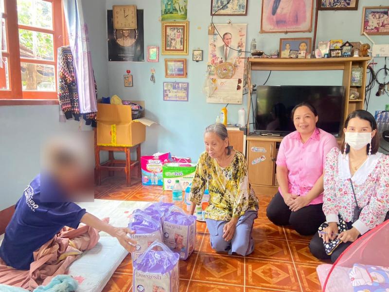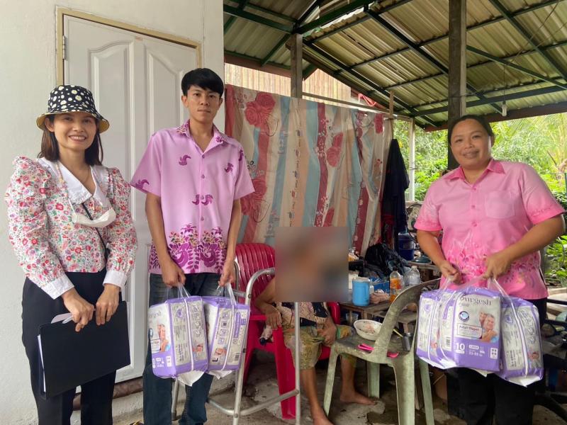 เยี่ยมบ้านพร้อมมอบผ้าอ้อมผู้ใหญ่ และผ้าอ้อมทางเลือกของศูนย์พัฒนาคุณภาพชีวิตและส่งเสริมผู้สูงอายุตำบลวังบาล พร้อมพูดคุยและให้กำลังใจ