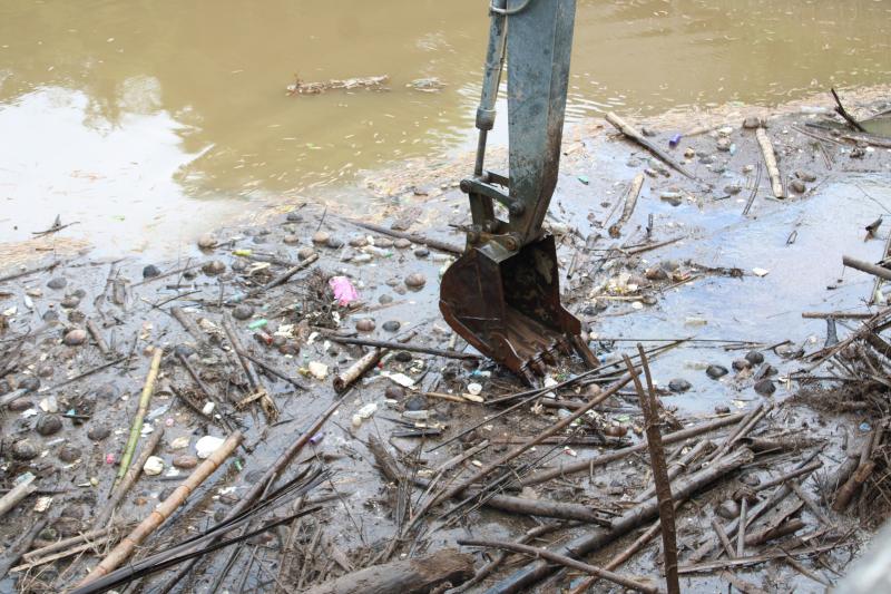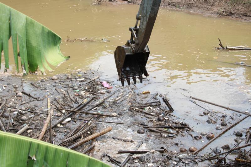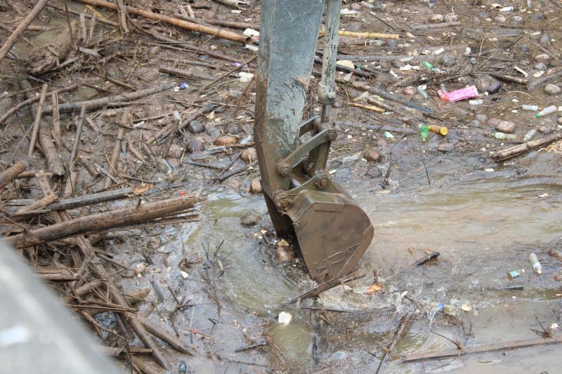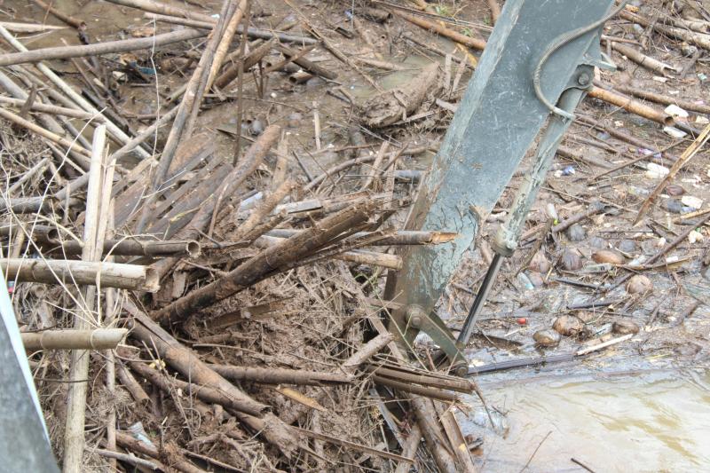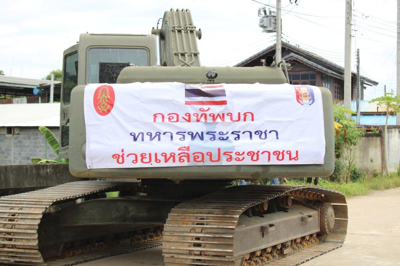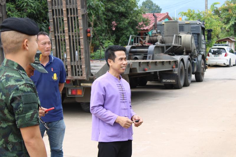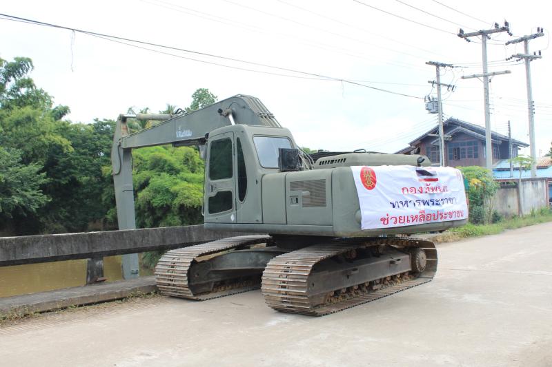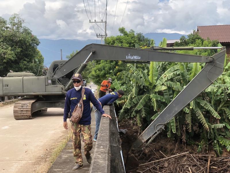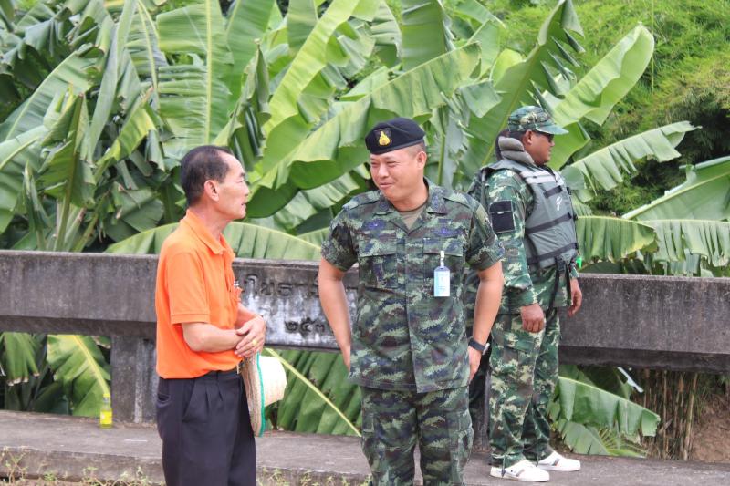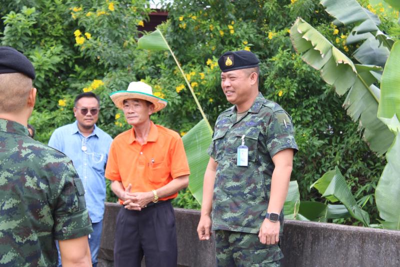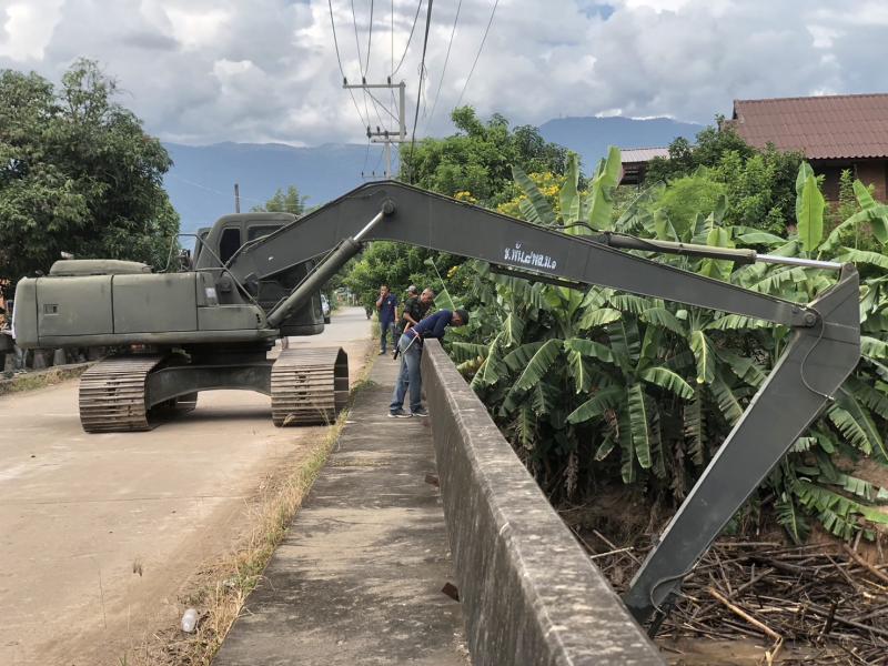 ลงพื้นที่บริเวณสะพานหมู่ 4 ติดตามการกำจัดสิ่งกีดขวางเส้นทางน้ำ ตามการขอรับสนับสนุนเครื่องจักรกลหนักของกองพันทหารช่างที่ 8 กองพลทหารม้าที่ 1