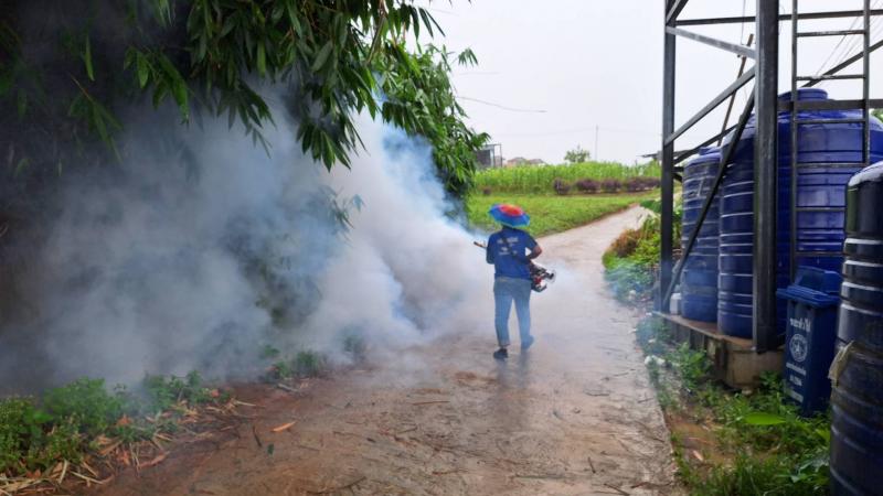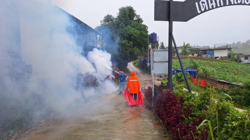 ดำเนินการพ่นหมอกควันกำจัดยุงลาย สนับสนุนให้กับเคสผู้ป่วย ในพื้นที่หมู่ 16 (ครั้งที่ 3)