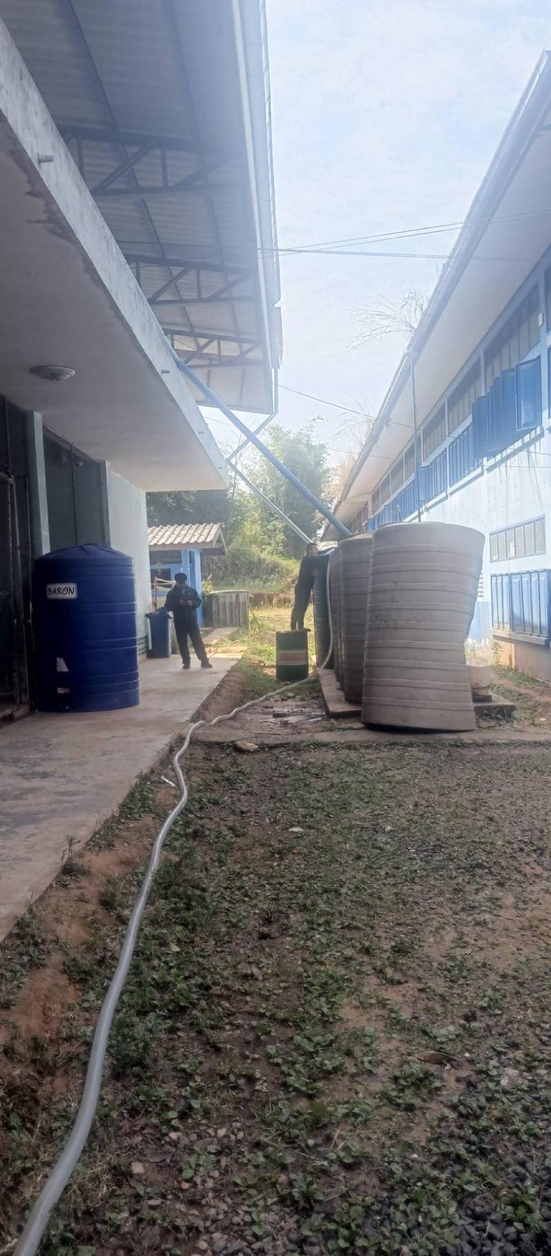 เจ้าหน้าที่ศูนย์ประสานงานบ้านทับเบิก ออกให้บริการสาธารณะส่งน้ำอุปโภคให้แก่ โรงเรียนบ้านทับเบิกร่วมใจ