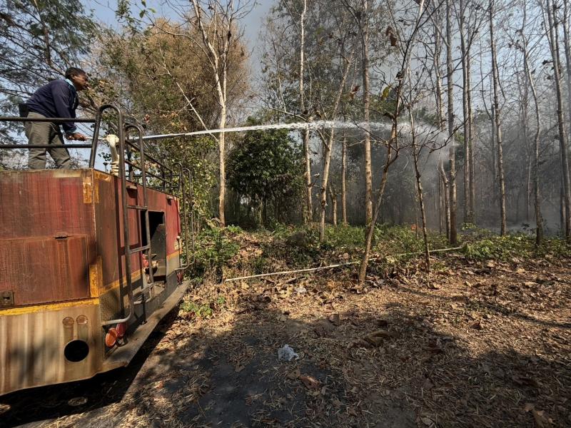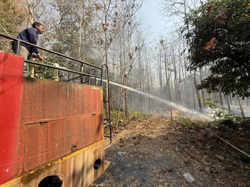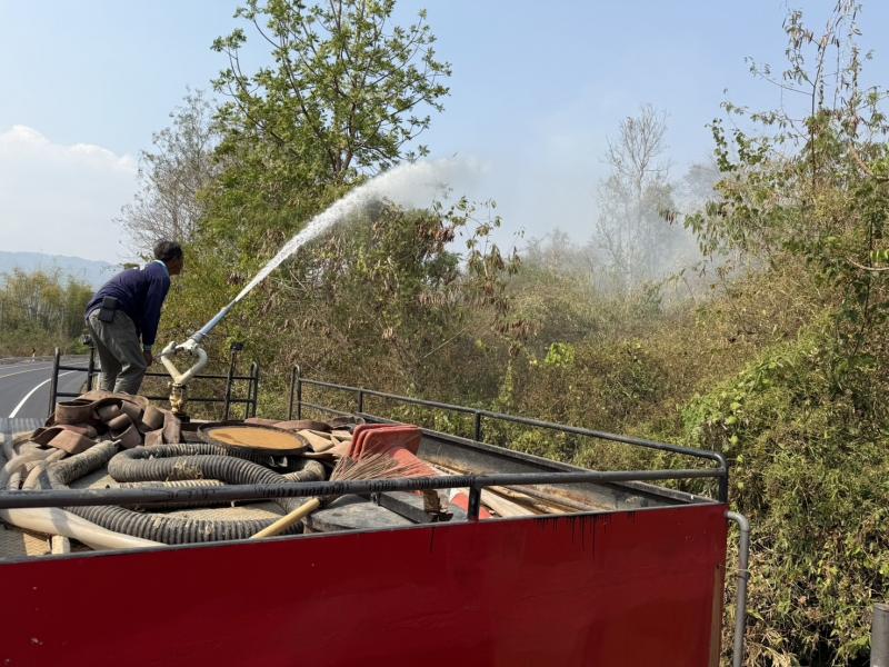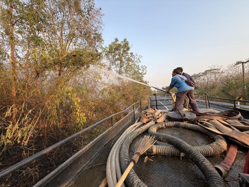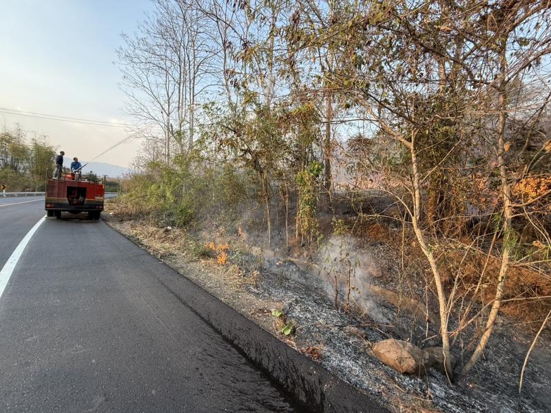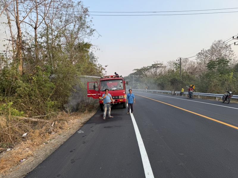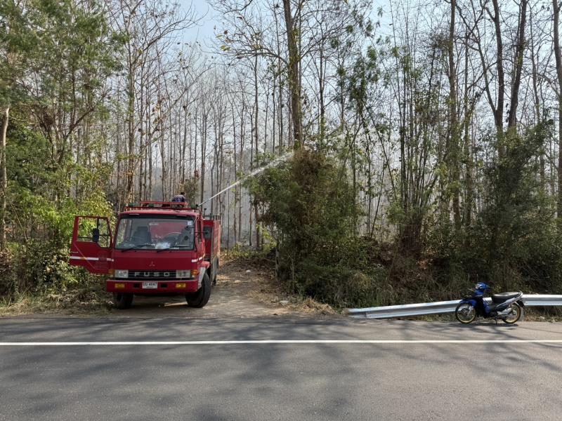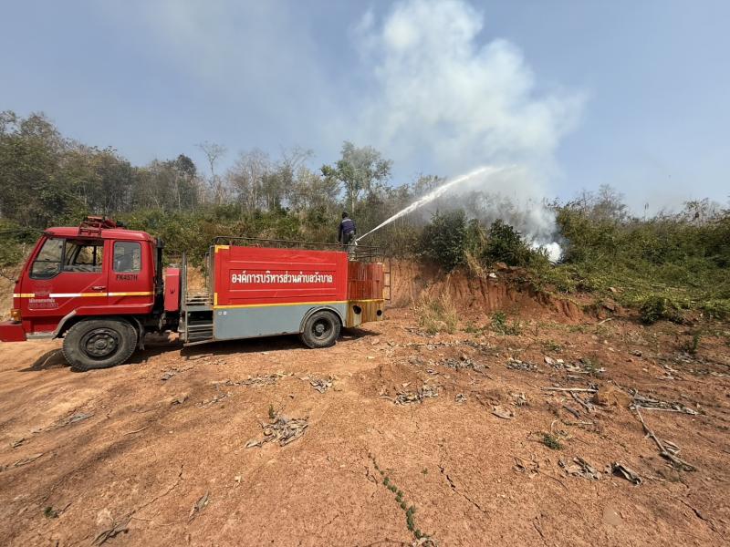 ร่วมปฏิบัติการระงับเหตุไฟป่าในพื้นที่หมู่ที่ 12 โดยการนำรถบรรทุกน้ำดับเพลิงเข้าช่วยควบคุมและดับไฟ