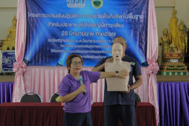ร่วมเปิดโครงการอบรมเชิงปฏิบัติการ การช่วยฟื้นคืนชีพขั้นพื้นฐาน สำหรับประชาชนทั่วไปและผู้มีภาวะเสี่ยง ของรพ.สต.วังบาล ณ วัดศรีฐาน