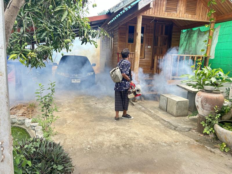 กองสาธารณสุขและสิ่งแวดล้อม องค์การบริหารส่วนตำบลวังบาล ดำเนินการพ่นหมอกควันกำจัดยุงลายในพื้นที่หมู่ที่ 4
