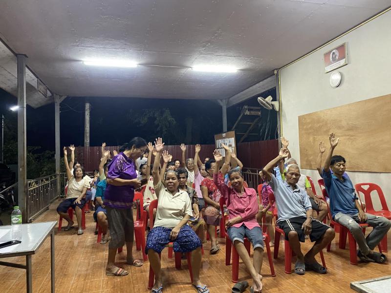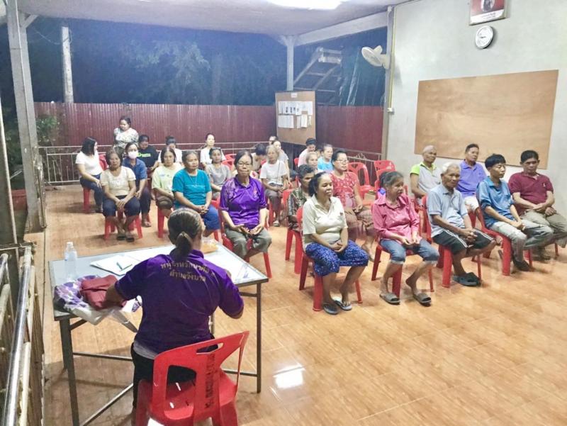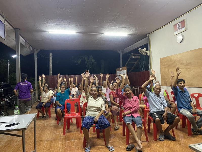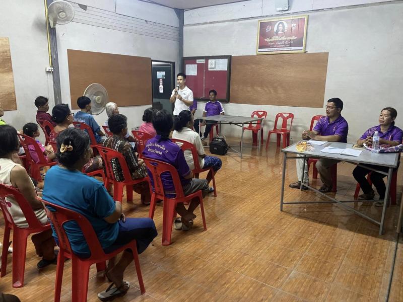 ร่วมประชาคมหมู่บ้าน พร้อมประชาสัมพันธ์การรับสมัครสมาชิกธนาคารขยะตำบลวังบาล ในพื้นที่หมู่ 7