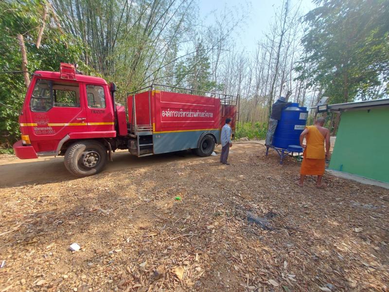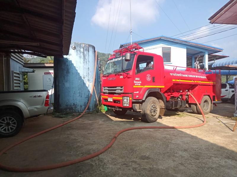 ออกให้บริการสาธารณะ เรื่องน้ำอุปโภค/บริโภค บรรทุกน้ำเพื่อสำรองน้ำให้ชาวบ้าน ในพื้นที่หมู่ 5, 10, 11 สำนักสงฆ์หมู่ที่ 7 และรพ.สต.ทับเบิก