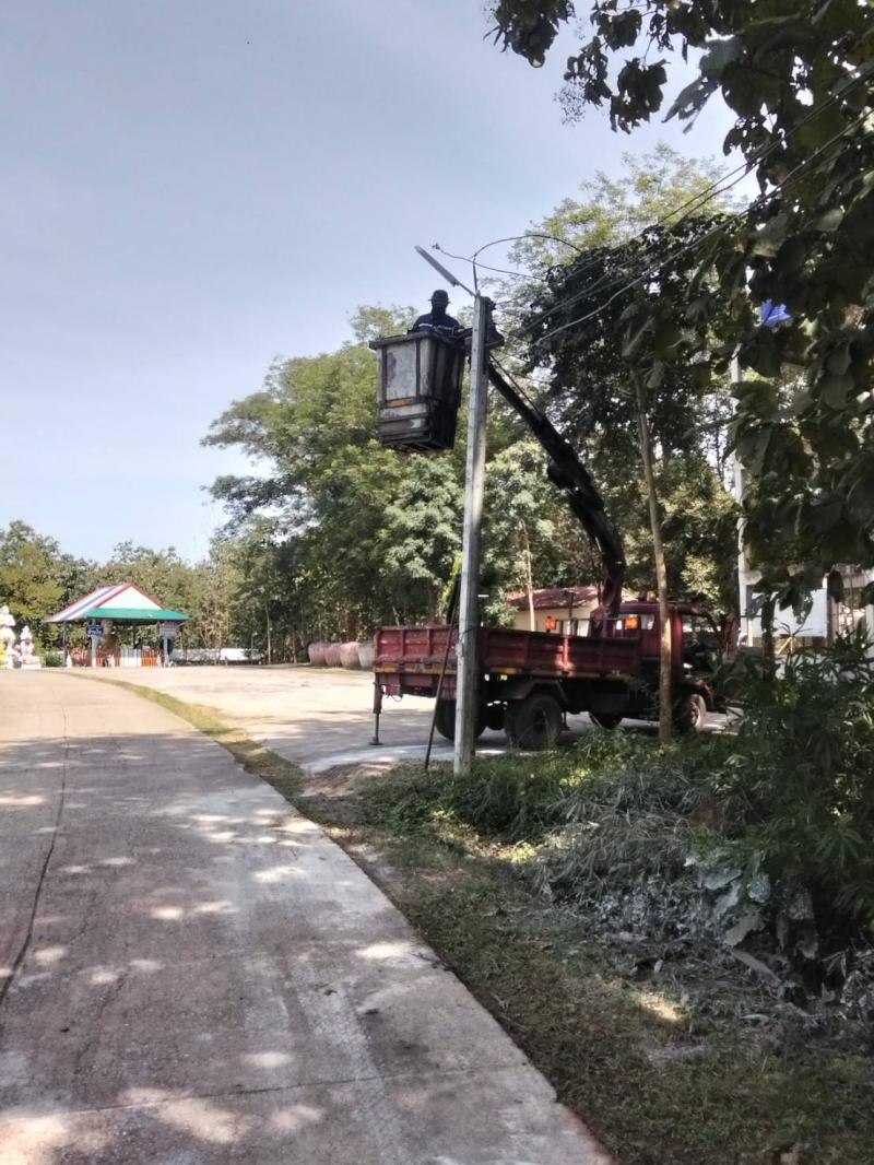 องค์การบริหารส่วนตำบลวังบาล ซ่อมไฟส่องสว่างบริเวณหน้าวัดโพนทอง และหมู่ที่ 7