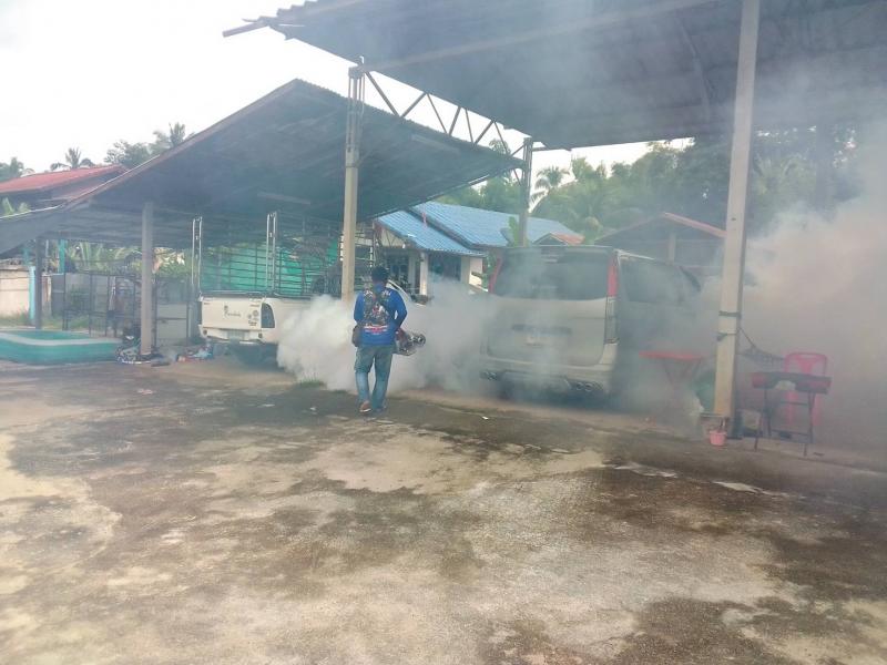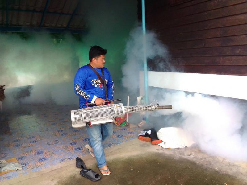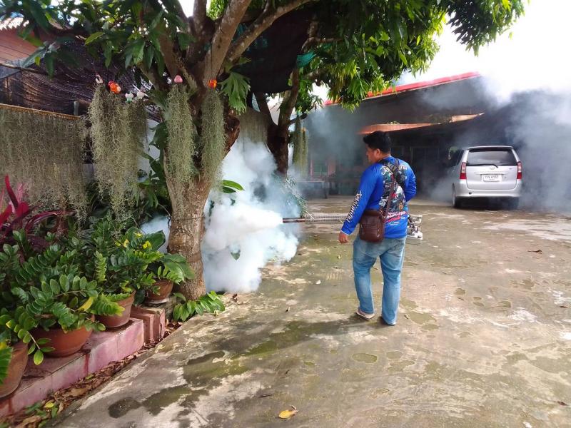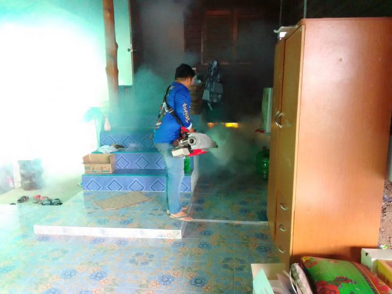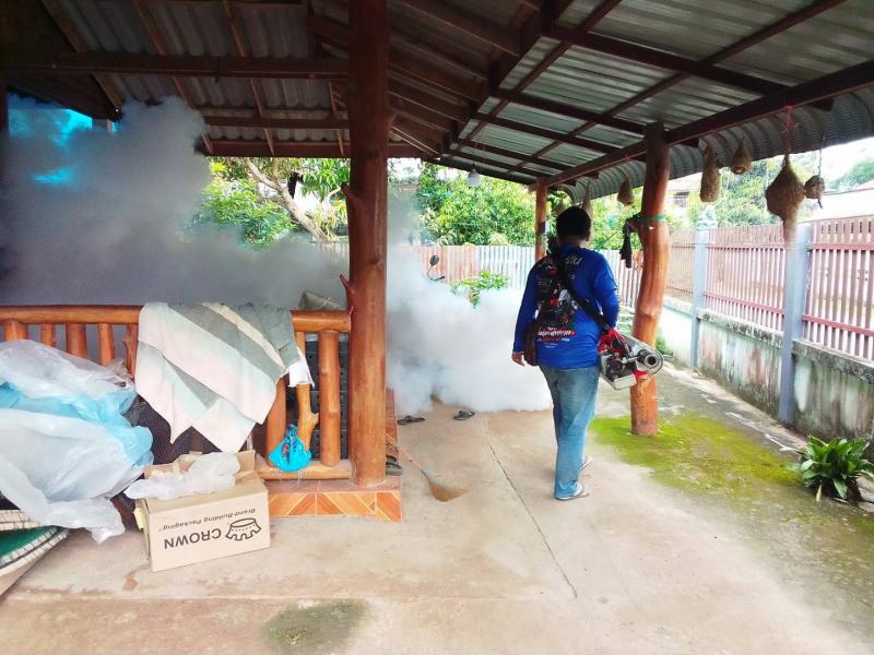 ดำเนินการพ่นหมอกควันกำจัดยุงลาย สนับสนุนให้กับเคสผู้ป่วยรายใหม่และรายเดิม ในพื้นที่หมู่ 5, 8 และ 14