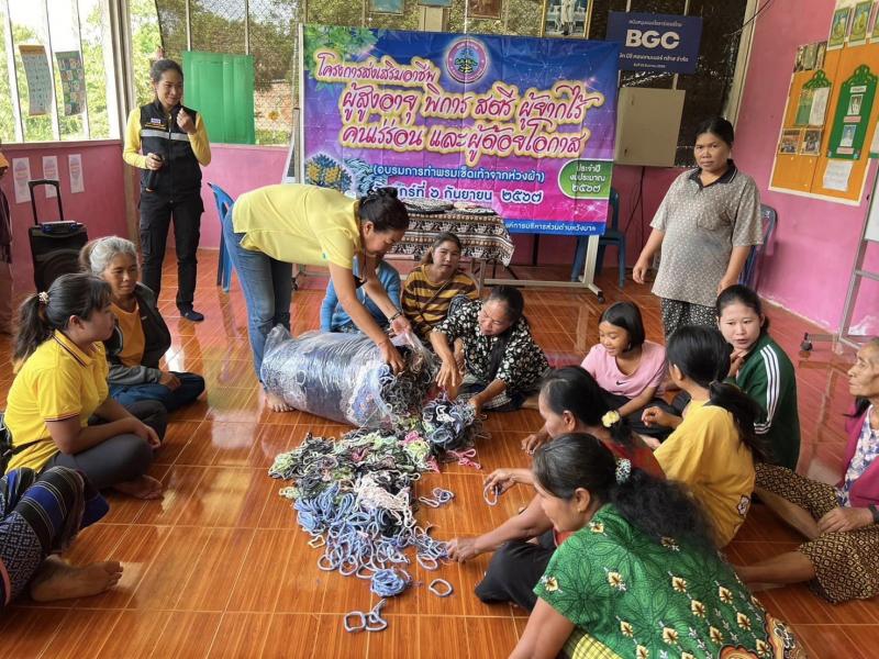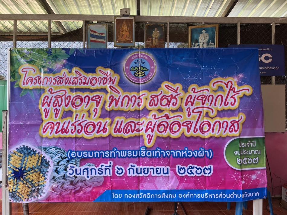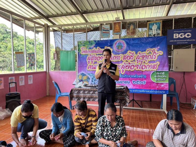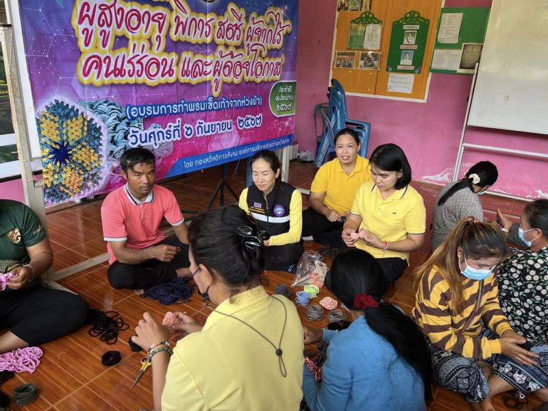 โครงการส่งเสริมอาชีพ ผู้สูงอายุ พิการ สตรี ผู้ยากไร้ คนเร่ร่อน และผู้ด้อยโอกาส (พรมเช็ดเท้าจากห่วงผ้า) ประจำปีงบประมาณ 2567 ณ หมู่บ้านนาสะอุ้ง