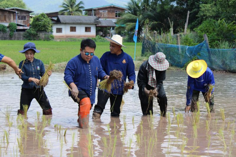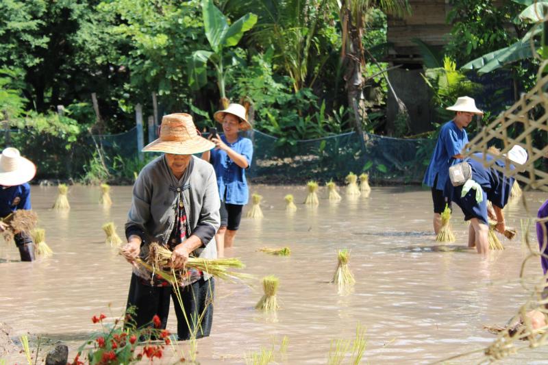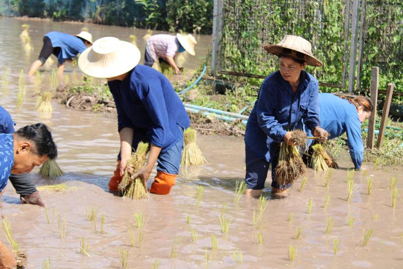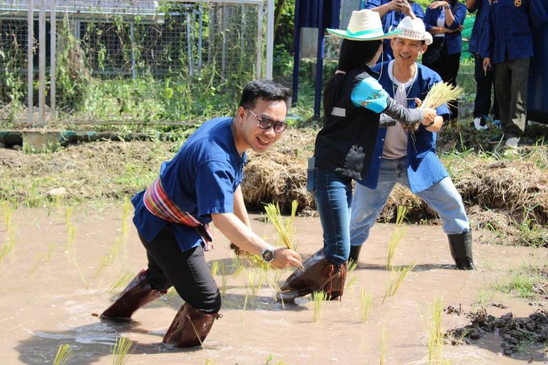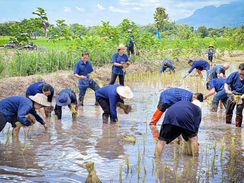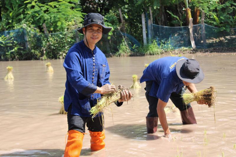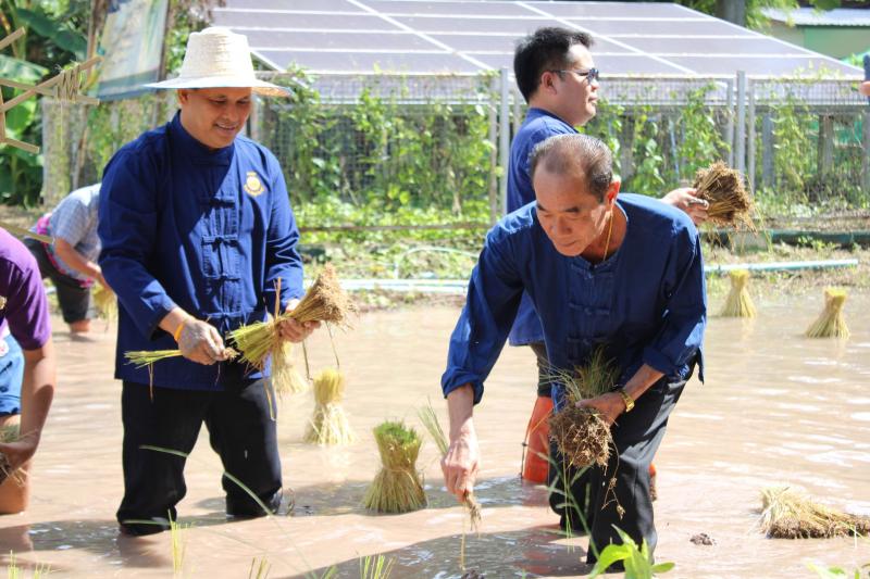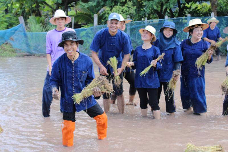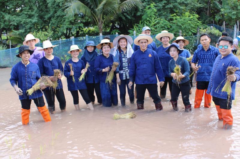 กิจกรรมดำนาข้าว ก้าวตามรอยพ่อ "ปักดำวันแม่ เก็บเกี่ยววันพ่อ" เนื่องในโอกาสมหามงคลวันเฉลิมพระชนมพรรษาพระบรมราชชนนีพันปีหลวง ณ แปลงนาพันธุ์ข้าวสาธิต วัดศรีฐานปิยาราม