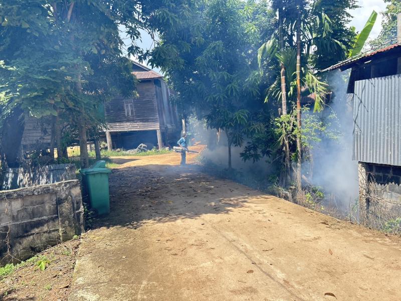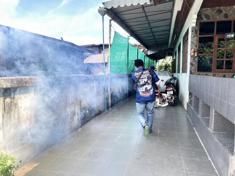 กองสาธารณสุขและสิ่งแวดล้อม อบต.วังบาล พ่นหมอกควันกำจัดยุงลาย หมู่ที่ 2 ครั้งที่ 2