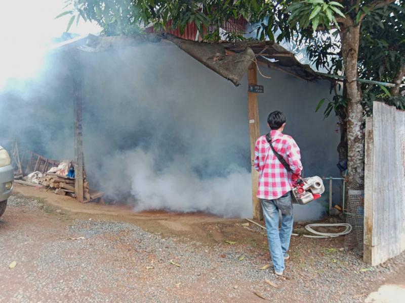 ดำเนินการพ่นหมอกควันกำจัดยุงลาย สนับสนุนให้กับเคสผู้ป่วยรายเดิม ในพื้นที่หมู่ที่ 11 (ครั้งที่ 2)