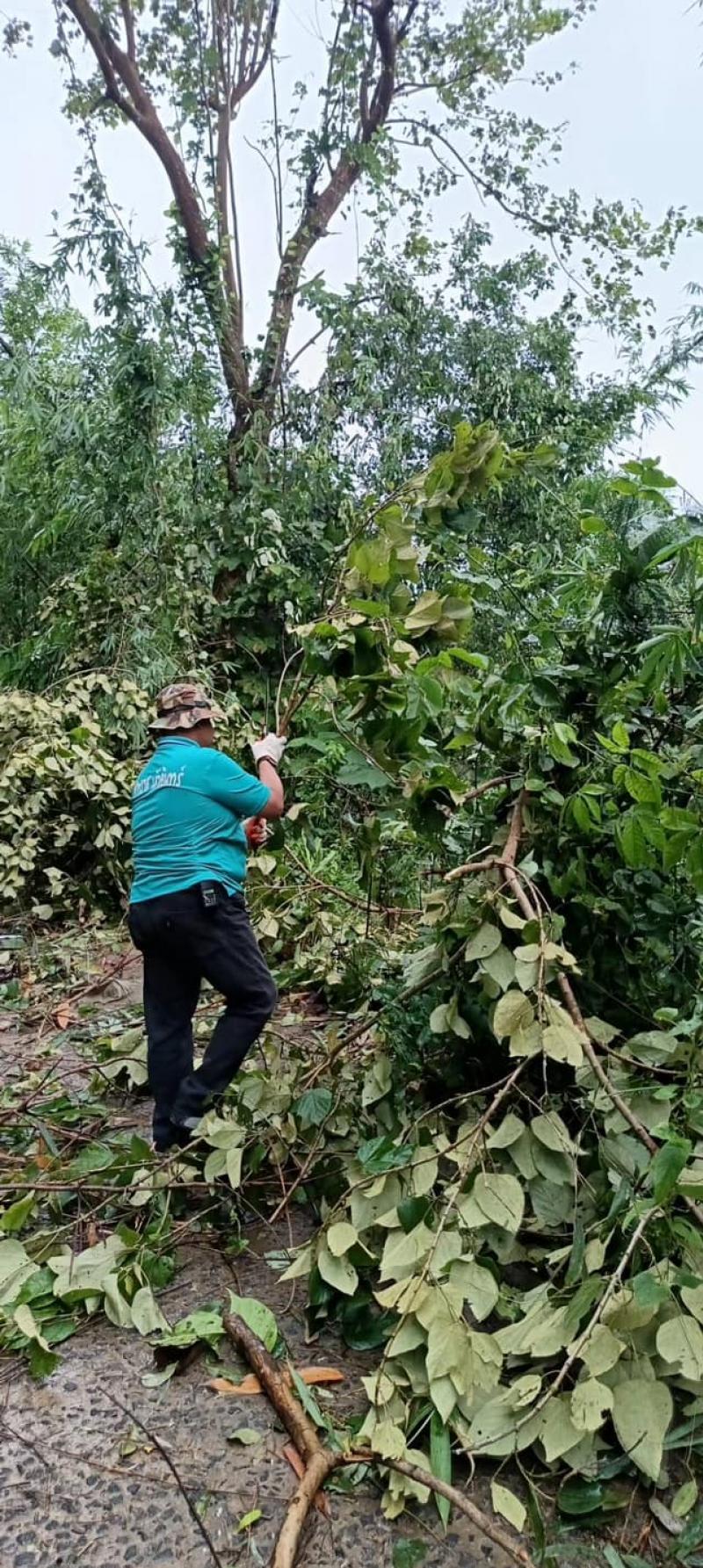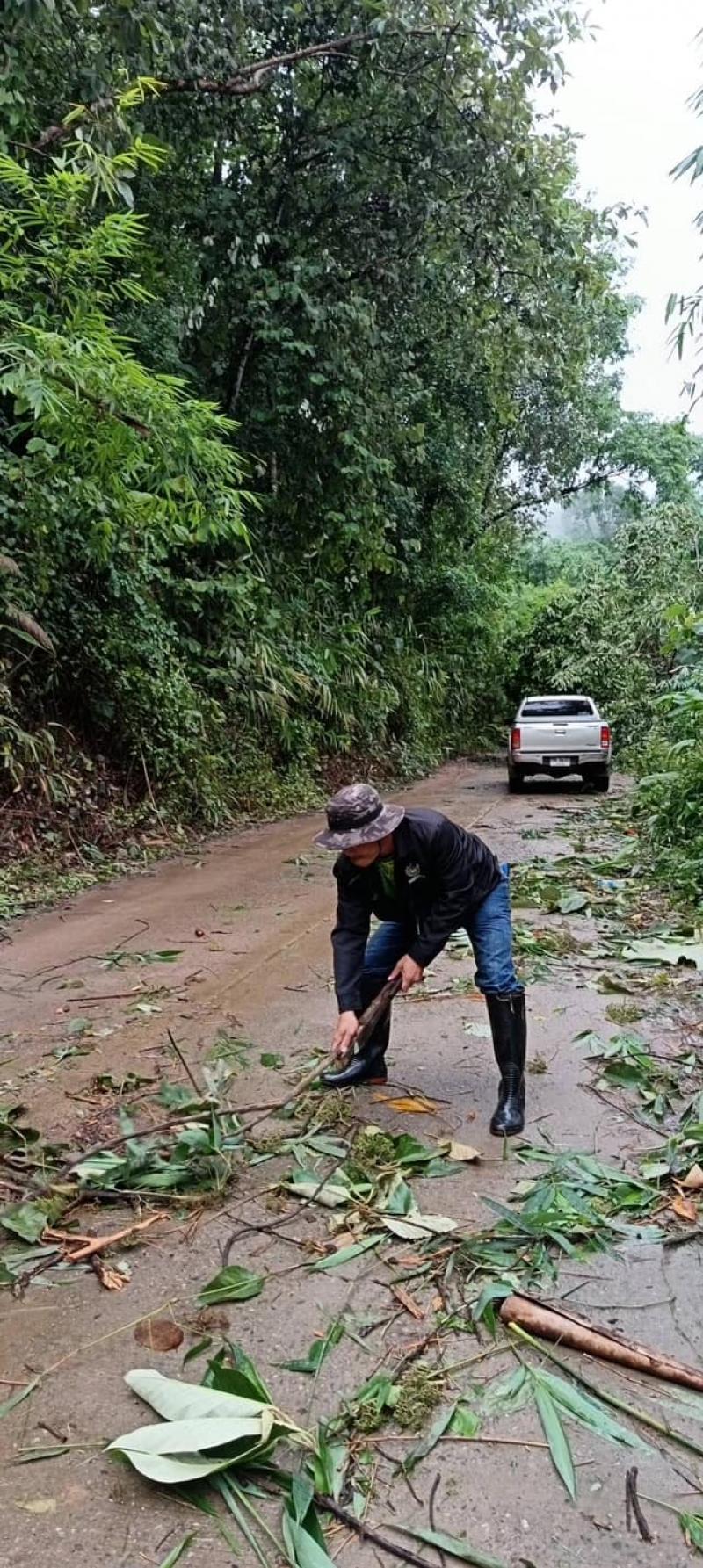 ให้บริการสาธารณะ ดำเนินการตัดต้นไม้ และเก็บกิ่งไม้ที่ล้มขวางเส้นทาง