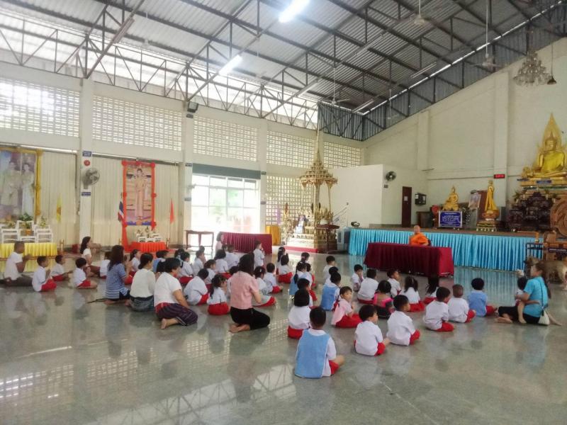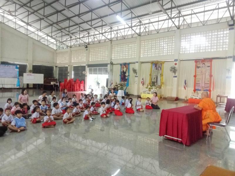 กิจกรรมพัฒนาผู้เรียน (กิจกรรมคุณธรรม จริยธรรม) "หนูน้อยสะสมบุญ" พร้อมร่วมฟังธรรมะ