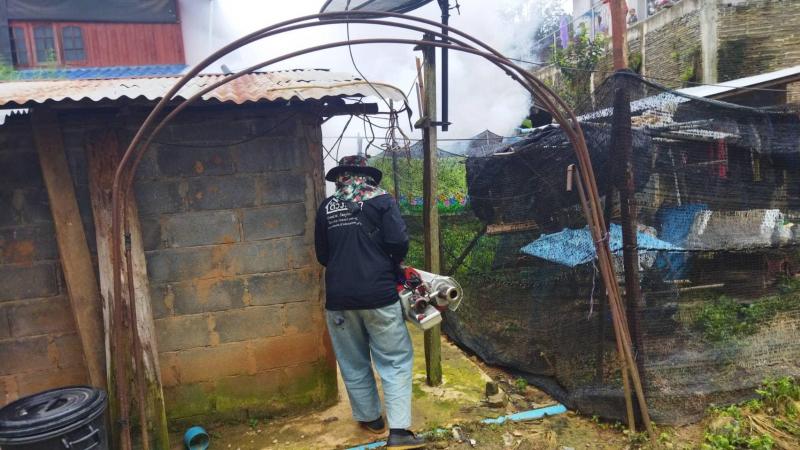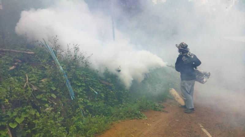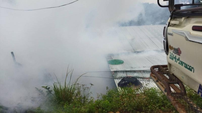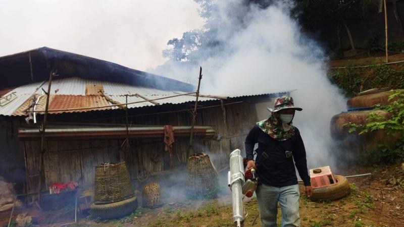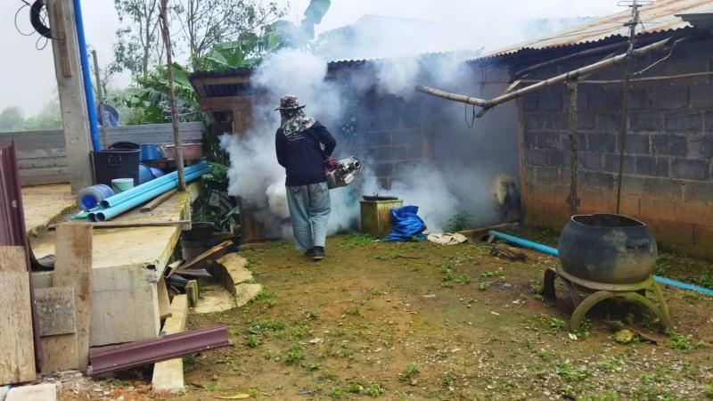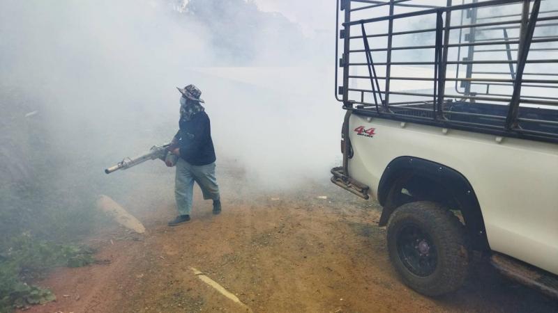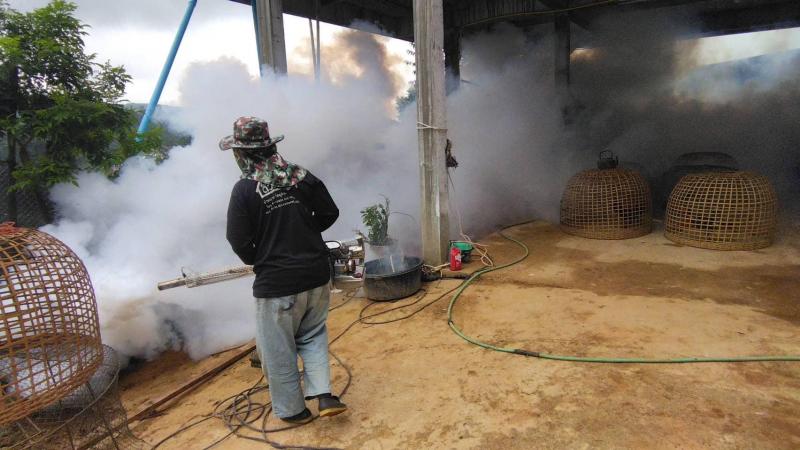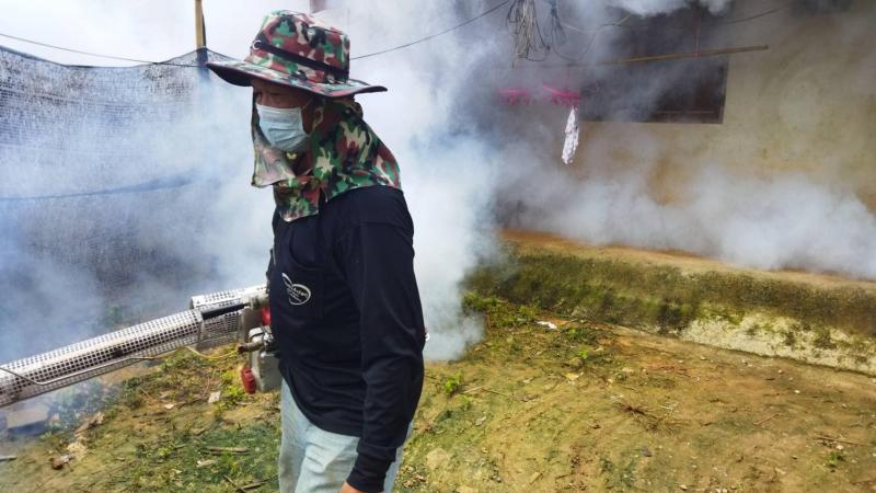 ดำเนินการพ่นหมอกควันกำจัดยุงลาย สนับสนุนให้กับเคสผู้ป่วยในพื้นที่หมู่ 14 บ้านทับเบิก