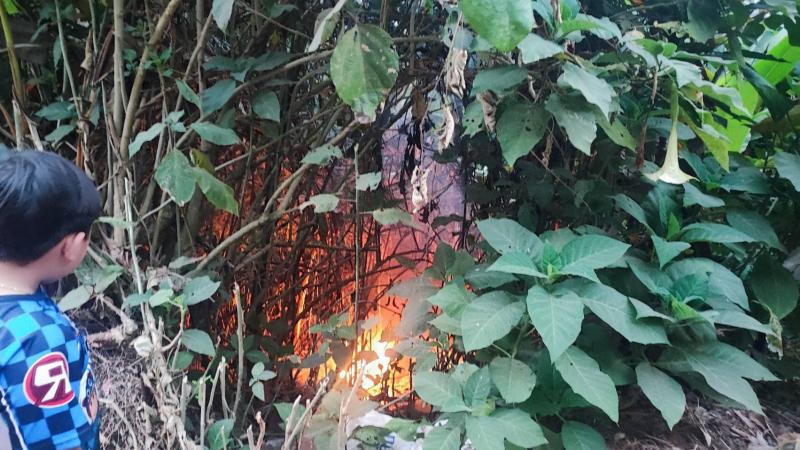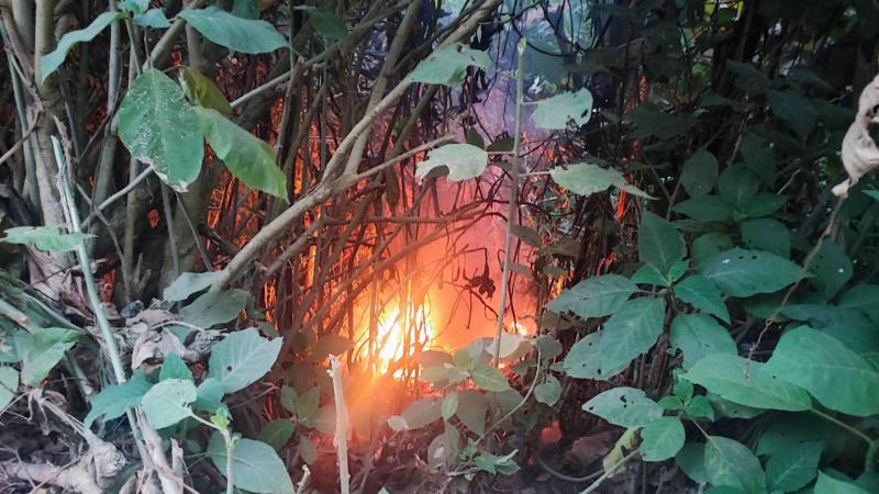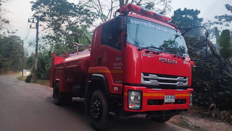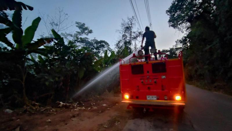 เข้าร่วมระงับเหตุไฟไหม้พุ่มหญ้า บริเวณทางเข้าบ้านทับเบิก