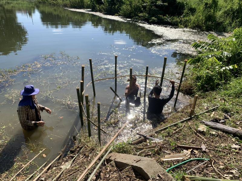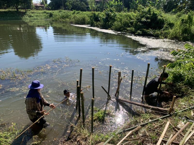 ร่วมกับผู้นำชุมชนและชาวบ้านในพื้นที่หมู่ที่ 6 จัดทำ “แซนวิชปลา” เพื่อเป็นแหล่งอาหารตามธรรมชาติ และเตรียมความพร้อมในการขอรับพันธุ์ปลา
