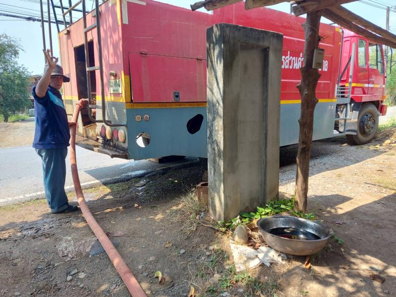 ออกให้บริการสาธารณะ เรื่องน้ำอุปโภค/บริโภค บรรทุกน้ำเพื่อสำรองน้ำให้ชาวบ้าน ในพื้นที่หมู่ 9, 10 และวัดจอมศรี (ดอยสะเก็ด)
