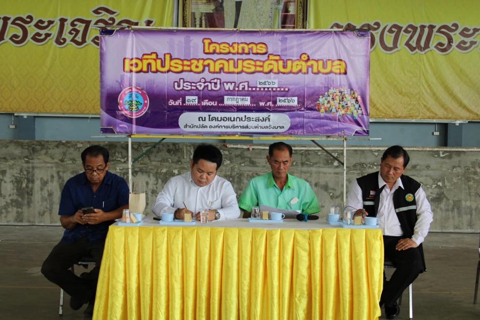 รายละเอียด : วันที่ 19 กรกฎาคม 2566 เวลา 09.30 น. นายสุขเสริญ บัวอินทร์ นายกองค์การบริหารส่วนตำบลวังบาล ฐานะประธานคณะกรรมการพัฒนา พร้อมด้วย นายธรรมบุตร มัททวะสุรเกียรติ์ นายจีระวัฒน์ แซ่เถา รองนายกองค์การบริหารส่วนตำบลวังบาล นายวิวัต เถารักตระกูล เลขานุการนายกองค์การบริหารส่วนตำบลวังบาล ว่าที่ร้อยตรีปรเมศวร์ราชพรหมมินทร์ รองปลัดองค์การบริหารส่วนตำบลวังบาล นางสาวสุริยาภรณ์ เทพธานี นักวิเคราะห์นโยบายและแผนชำนาญการพิเศษ และพนักงาน สำนักปลัด จัดทำโครงการเวทีประชาคมระดับตำบล ประจำปี พ.ศ.2566 เพื่อเพิ่มเติมและเปลี่ยนแปลงแผนพัฒนาท้องถิ่น (2566-2570) ครั้งที่ 3/2565 ณ โดมอเนกประสงค์ อบต.วังบาล โดยมี กำนันตำบลวังบาล ผู้นำชุมชน สมาชิกสภาองค์การบริหารส่วนตำบลวังบาล หัวหน้าส่วนราชการ หน่วยงานราชการในระดับตำบล และประชาชน เข้าร่วมโครงการเวทีประชาคมระดับตำบลในครั้งนี้ด้วย พร้อมกันนี้ยังมีเจ้าหน้าที่หน่วยงานราชการ ที่รับผิดชอบในเขตพื้นที่ตำบลวังบาล ร่วมเข้าชี้แจงข้อสั่งการของราชการเพื่อประชาสัมพันธ์ไปยังผู้นำชุมชนอีกด้วย